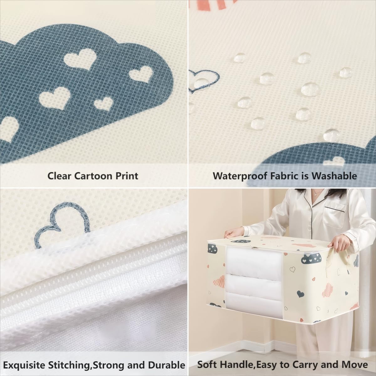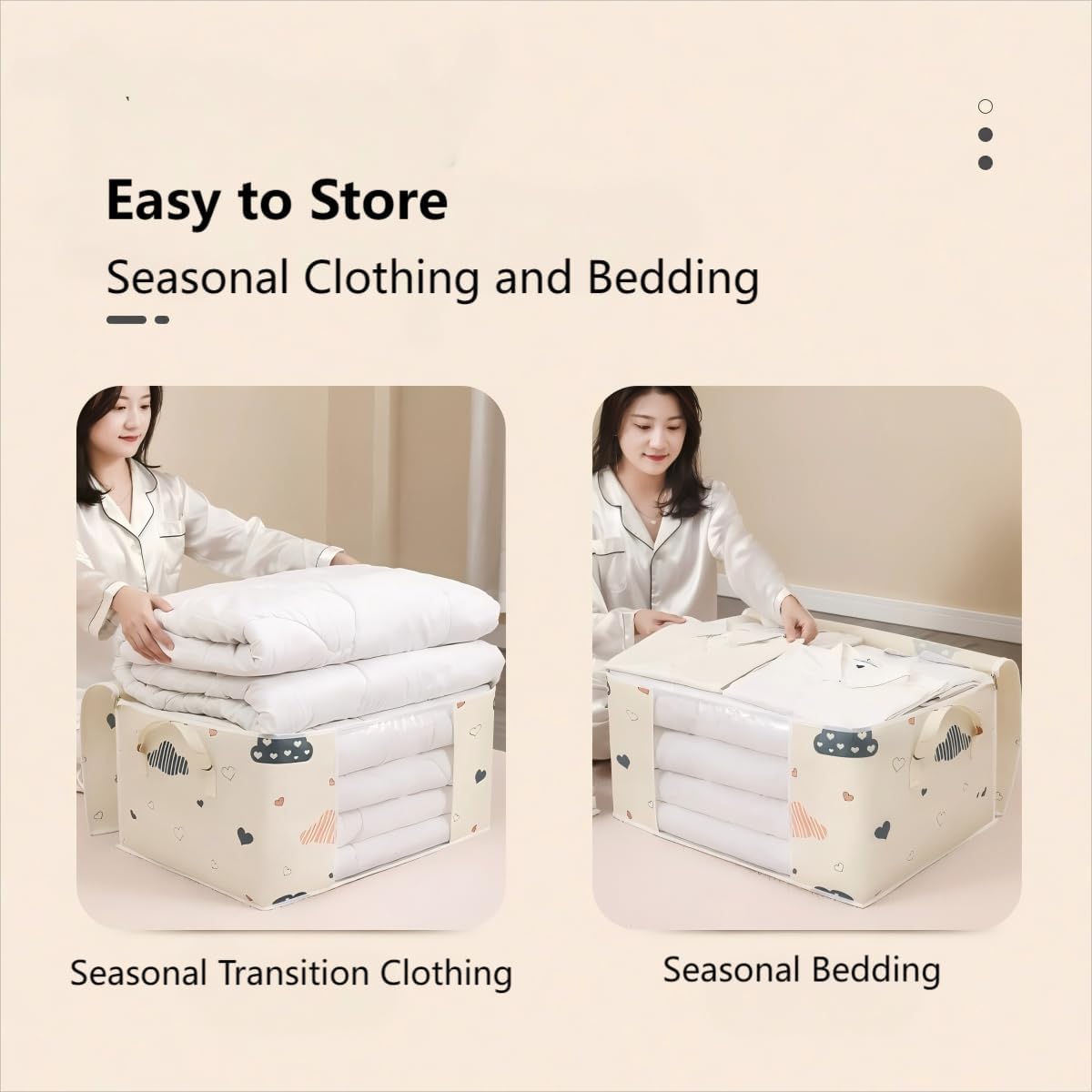 3 Pcs Large Foldable Storage Bag Organizer with Reinforced Handle,Clear Window,Zipper Closure,Moving Bags and Storage Containers for Bedding,Comforters,Clothing,Beige.
