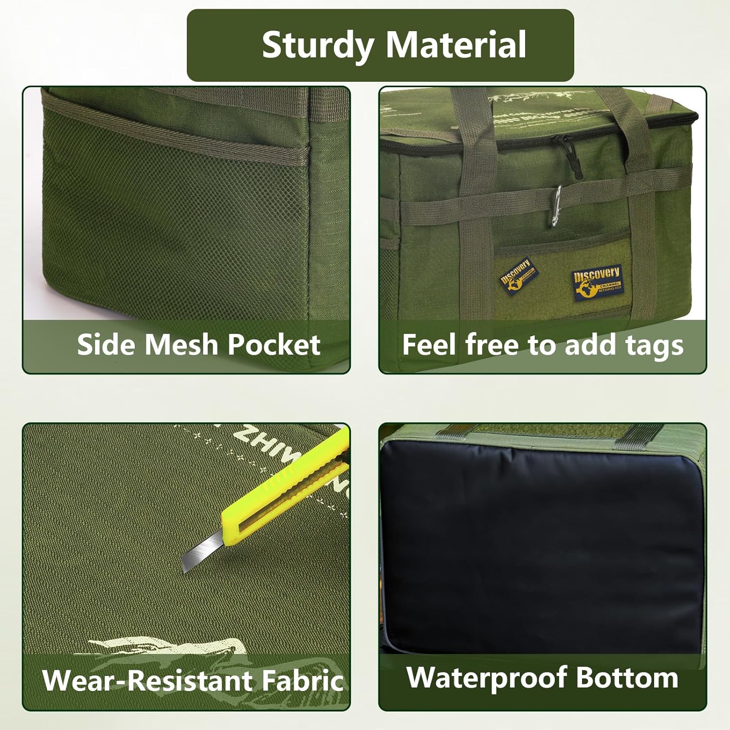 - Convenient Storage: Two mesh pockets on each side of the bag, plus a large zippered mesh pocket on top, make it easy to carry and organize hand tools, flashlights, camping cups, bowls, and other items. The storage bag can also be folded for space-saving storage
