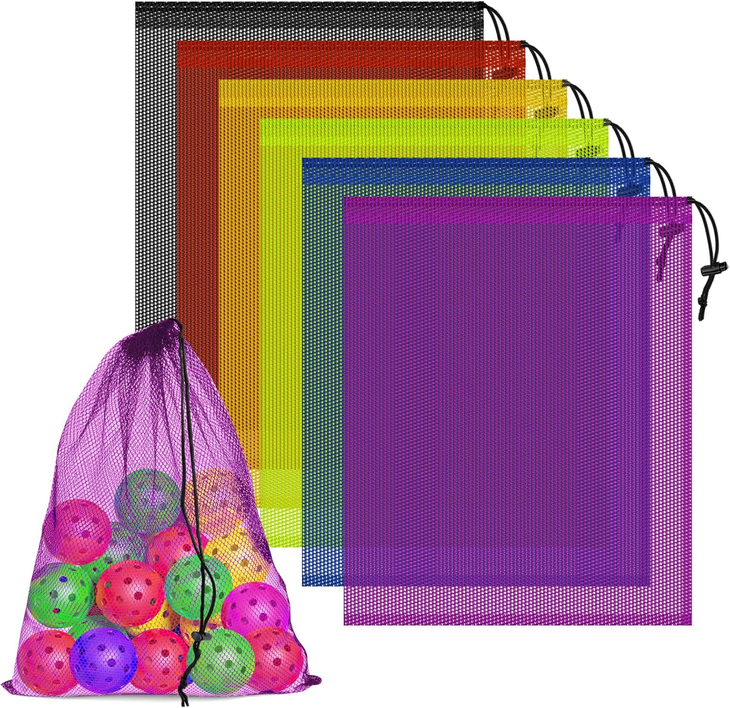 6 Pcs Mesh Bags Drawstring, 14×17 Inch with Lock, Multipurpose Storage Bags for Gym, Balls, Beach, Laundry(Black)
