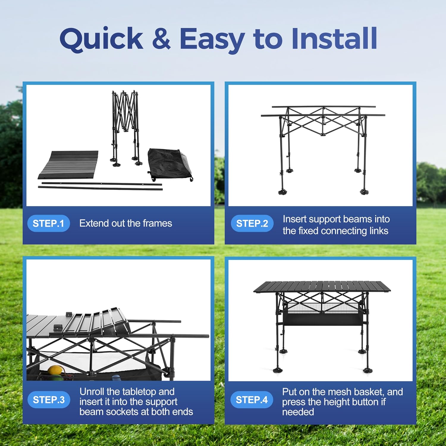ALPHA CAMP Portable Camping Table, Adjustable Aluminum Folding Table for Picnic, BBQ, Outdoor, Black, 21.65D x 33.07W x 26.77H in