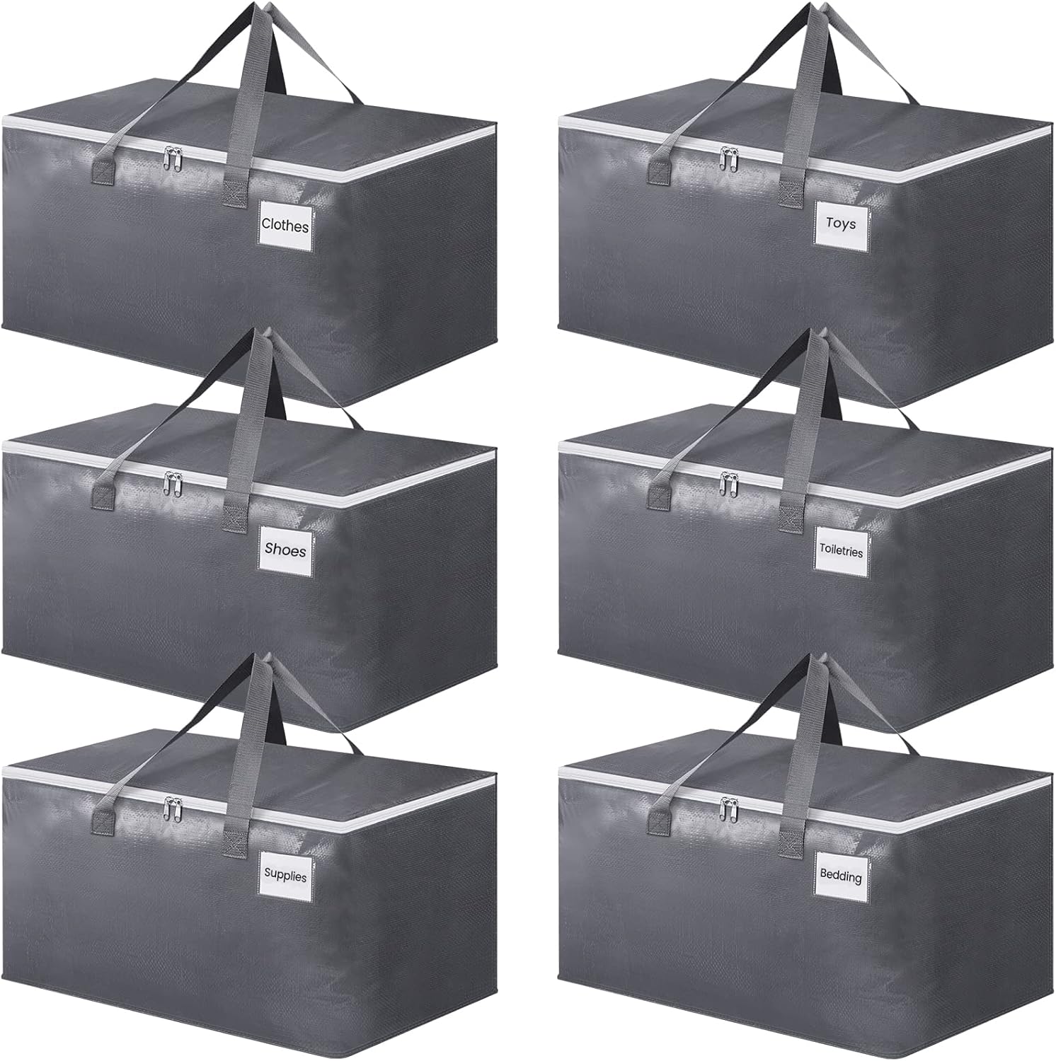 BlissTotes Large Moving Bags, Storage Bags with Zippers, Handles Moving Supplies with lids, Heavy Duty Totes for Storage Bags for Space Saving, Moving and Storing 93L, 6 Pack