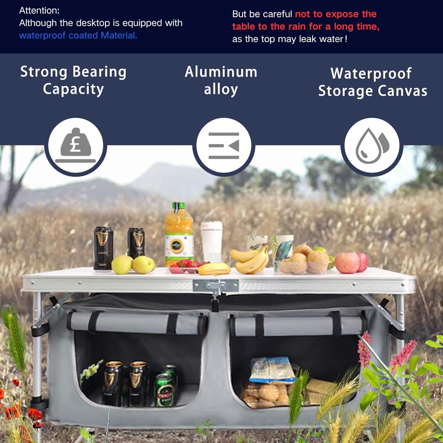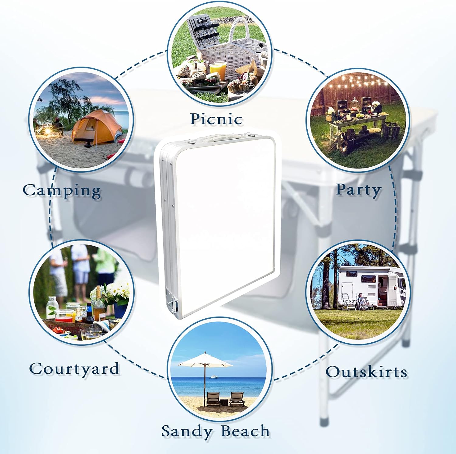 CampLand Outdoor Folding Table Aluminum Lightweight Height Adjustable with Storage Organizer for BBQ, Party, Camping
