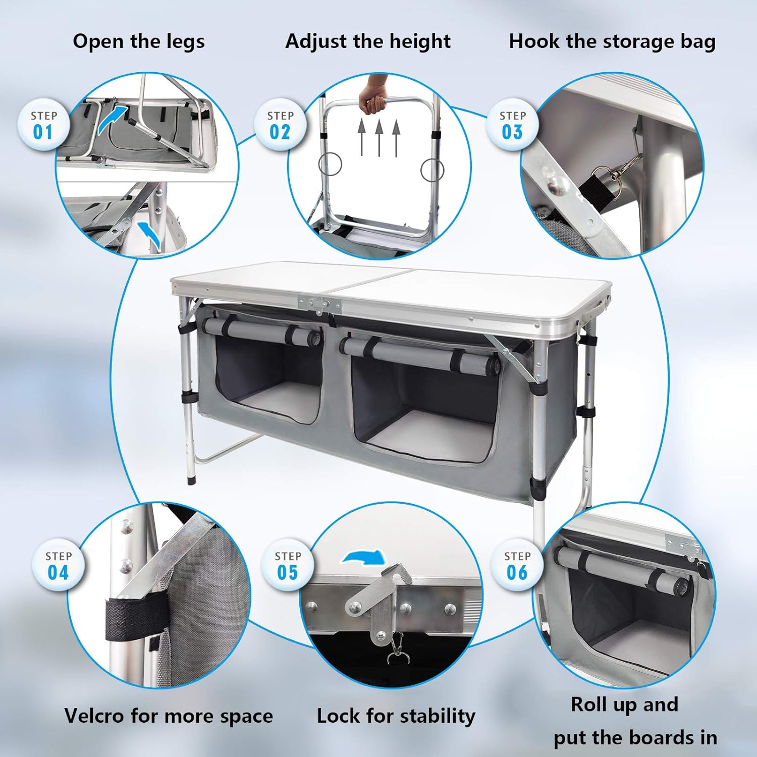 CampLand Outdoor Folding Table Aluminum Lightweight Height Adjustable with Storage Organizer for BBQ, Party, Camping quantity