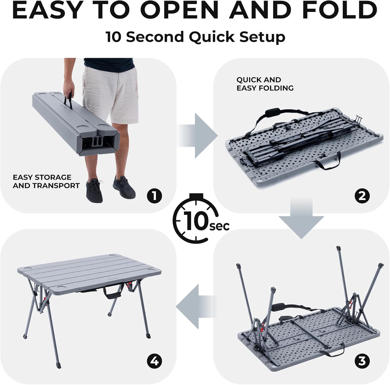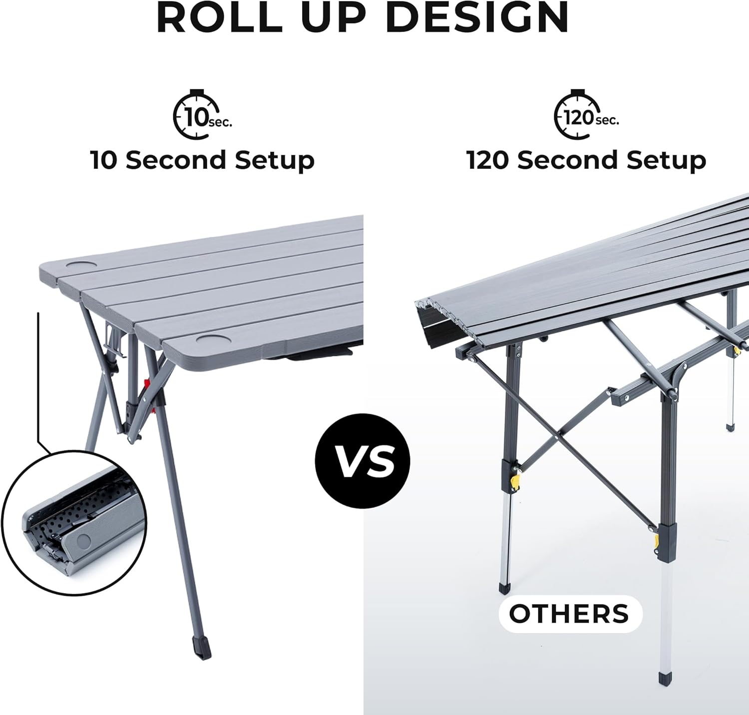 Cococabana X Camphor Portable Folding Table with Adjustable Shoulder Strap for Camping, Tailgating, Picnic, RV – Roll Up Design, Quick Setup, Compact Size, Heavy-Duty, Scratch & Stain Resistant