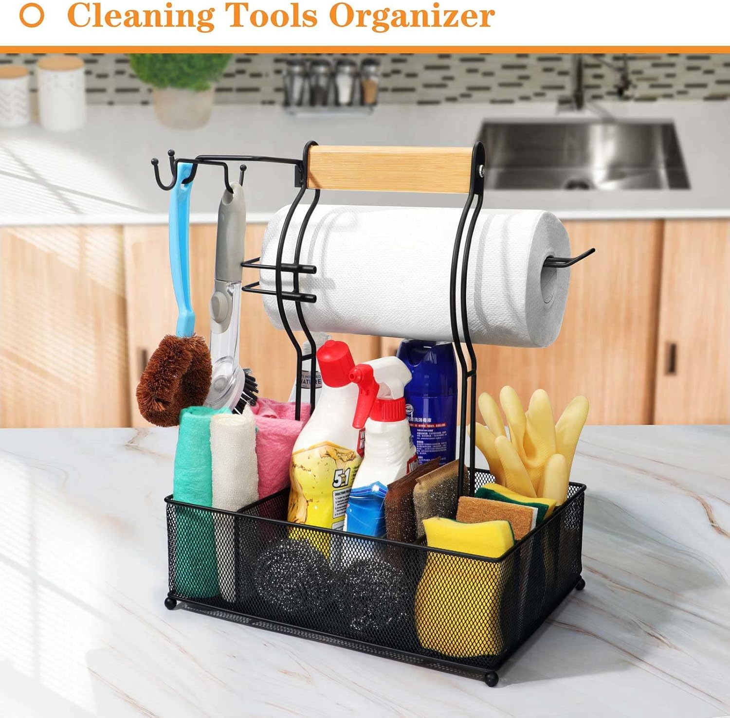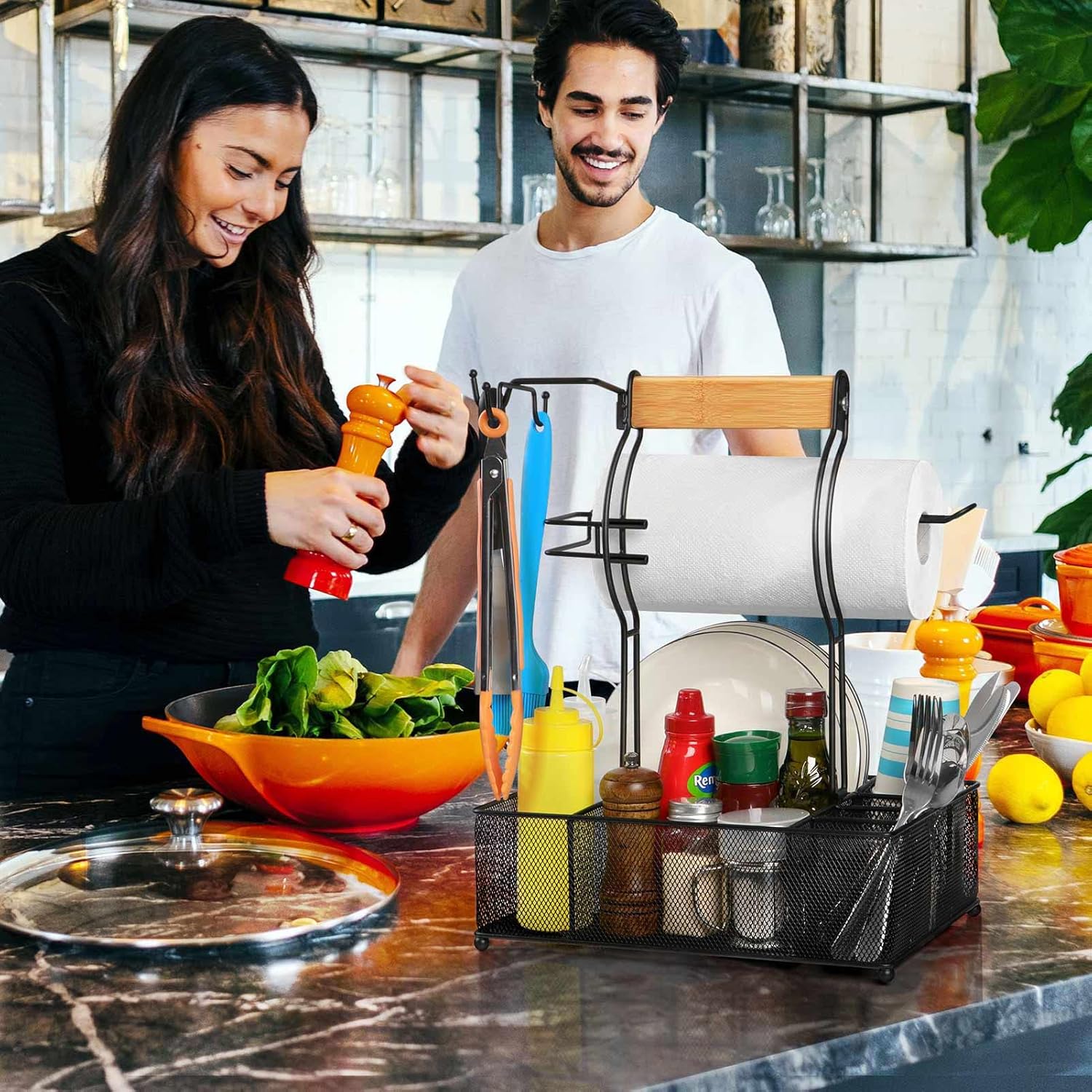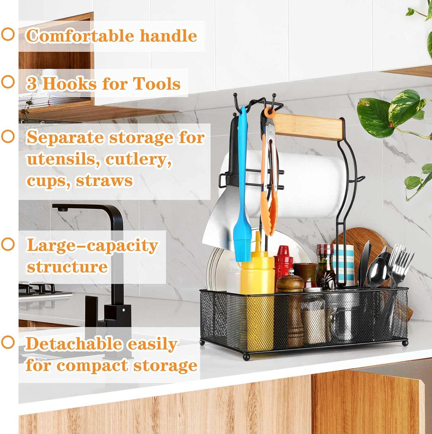 FANGSUN Grill Caddy, BBQ Caddy with Paper Towel Holder, Picnic Condiment Utensil Caddy for Outdoor Camping, Barbecue Accessories Storage Organizer for Griddle Grilling Tool, Rv Patio Camper Must Haves