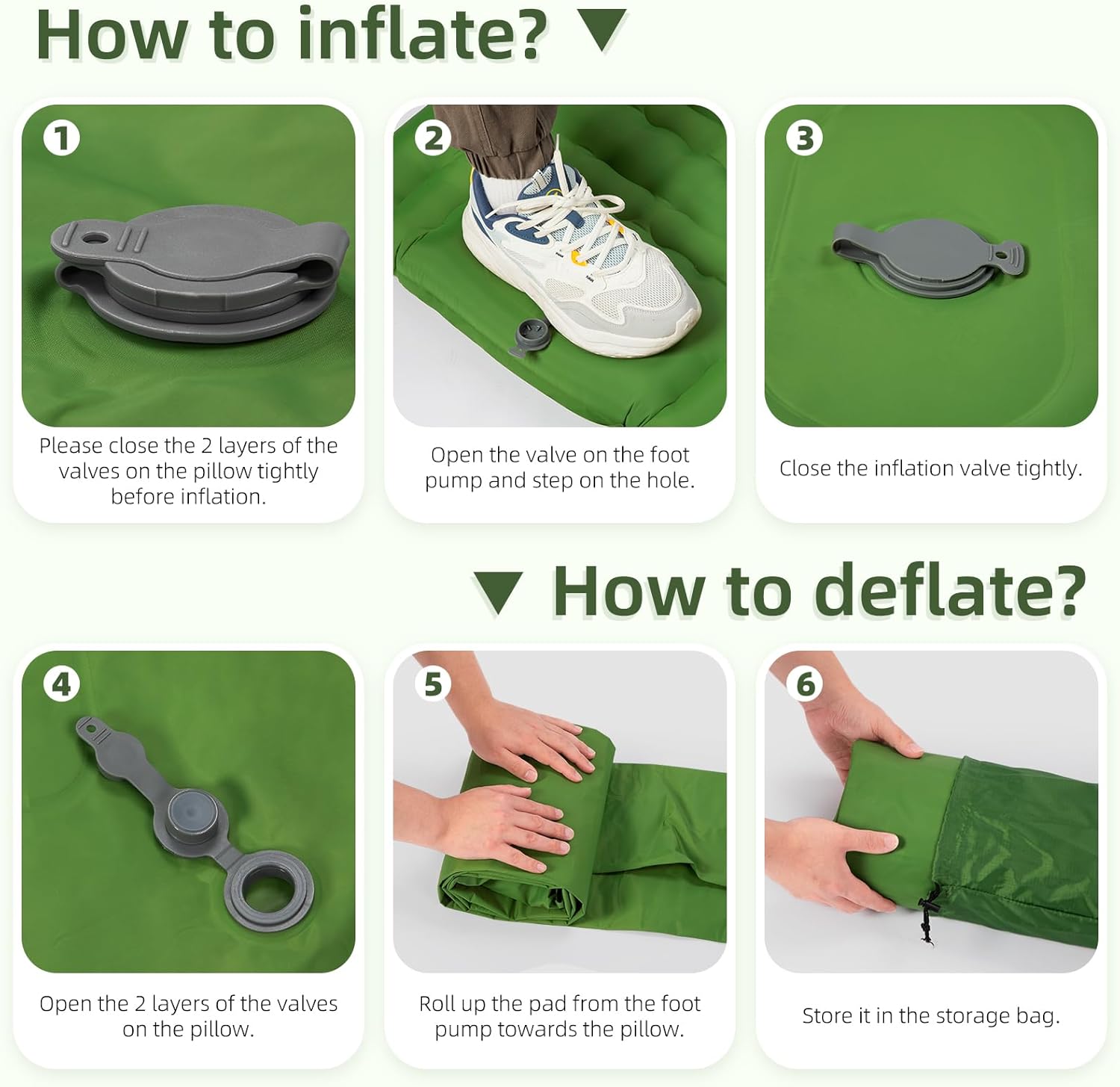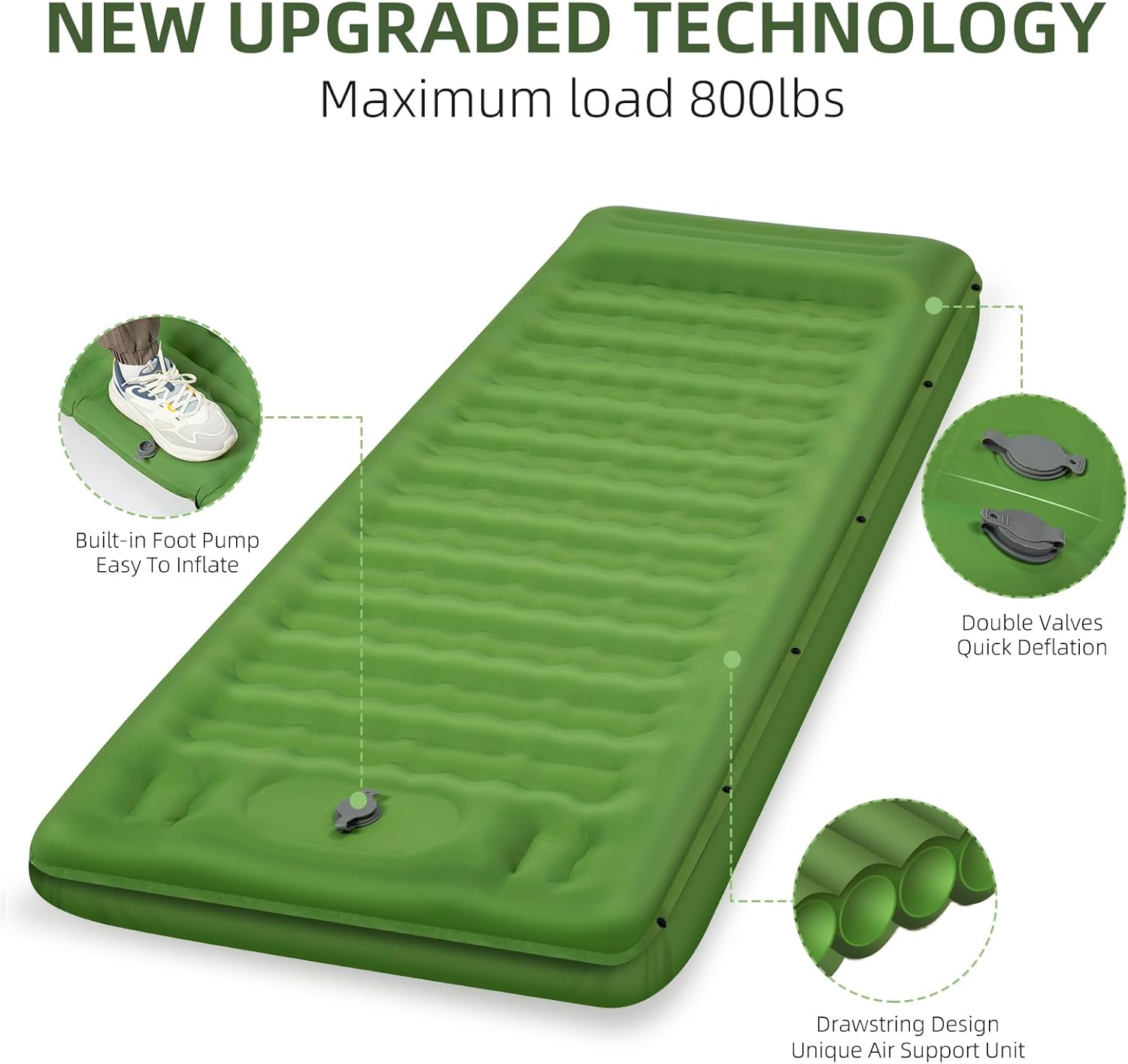 FNARMW Camping Sleeping Pad, Extra Thick 5 Inch Camping Mat with Pillow Built-in Foot Pump Inflatable Sleeping Pads Compact for Camping Backpacking Hiking Traveling Tent(Green) quantity