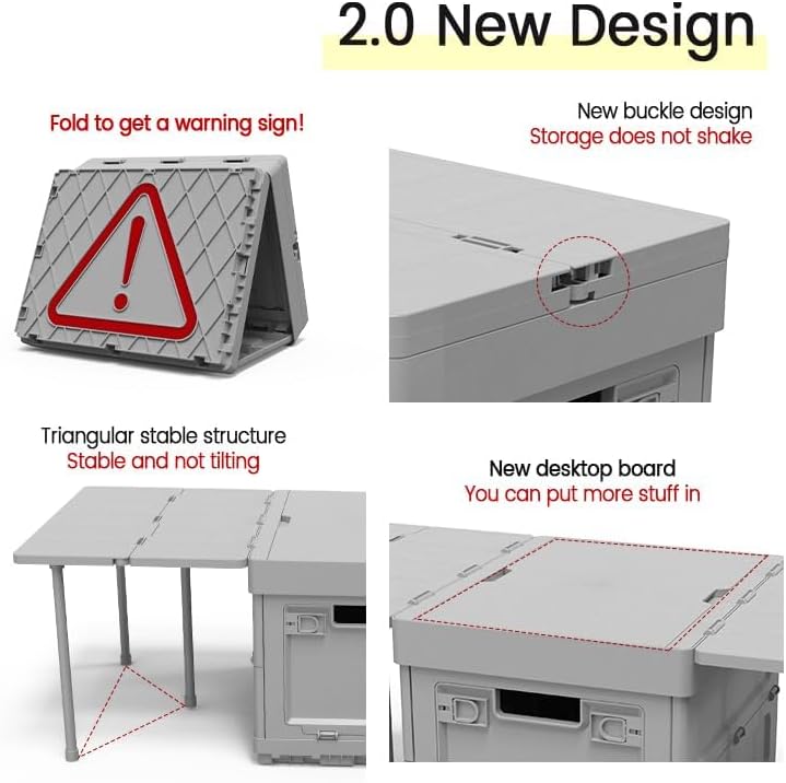 In emergency situations, the folding table can be folded into a triangle and quickly converted into a parking warning sign. This feature improves safety and reduces the risk of rear end collisions by reminding other drivers of your presence.