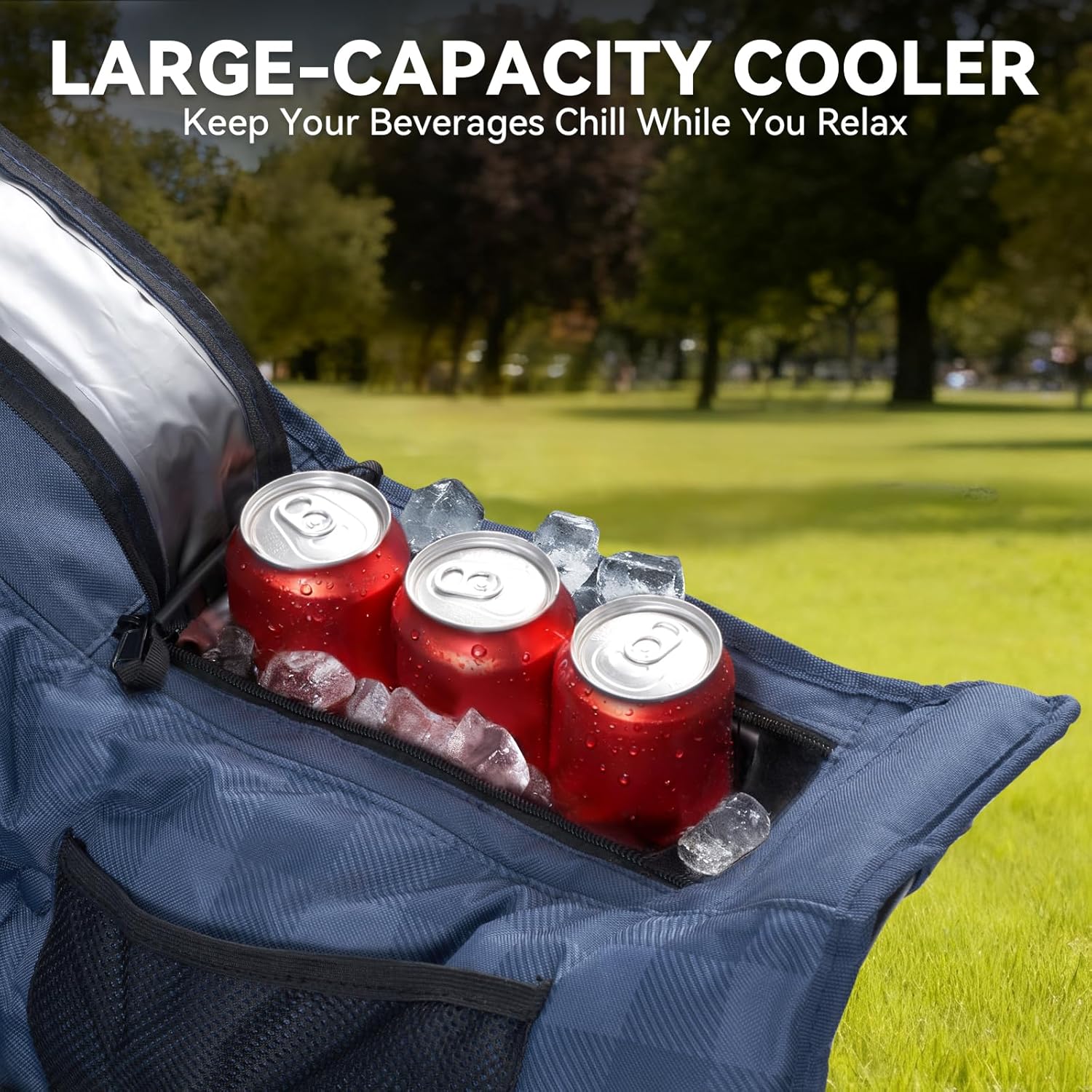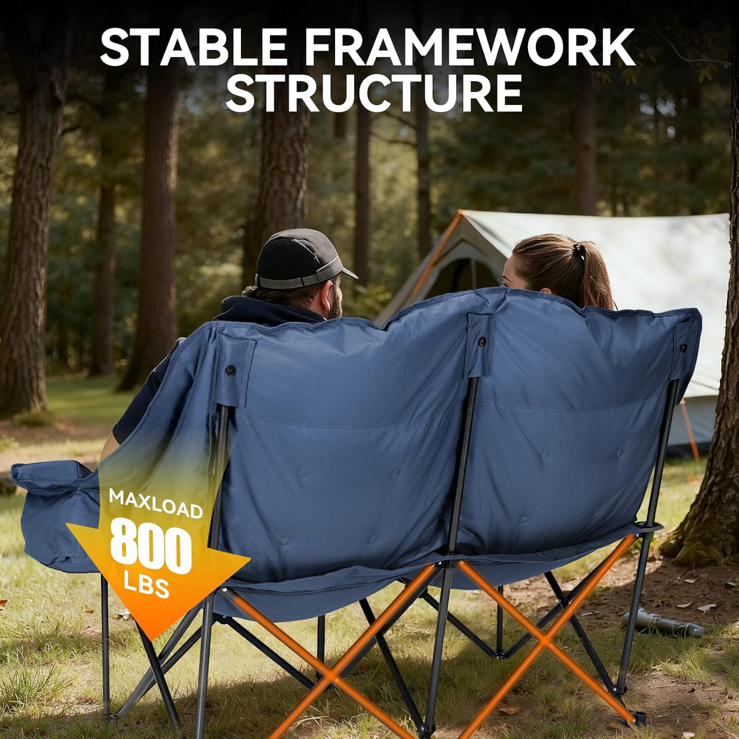 Huskfirm Padded Double Camping Chair High Back Double Seat Camping Chair Oversized Camping Loveseat Support 800LBS Heavy Duty Camping Couch with Cup Holders, Cooler, Carry Bag, Blue