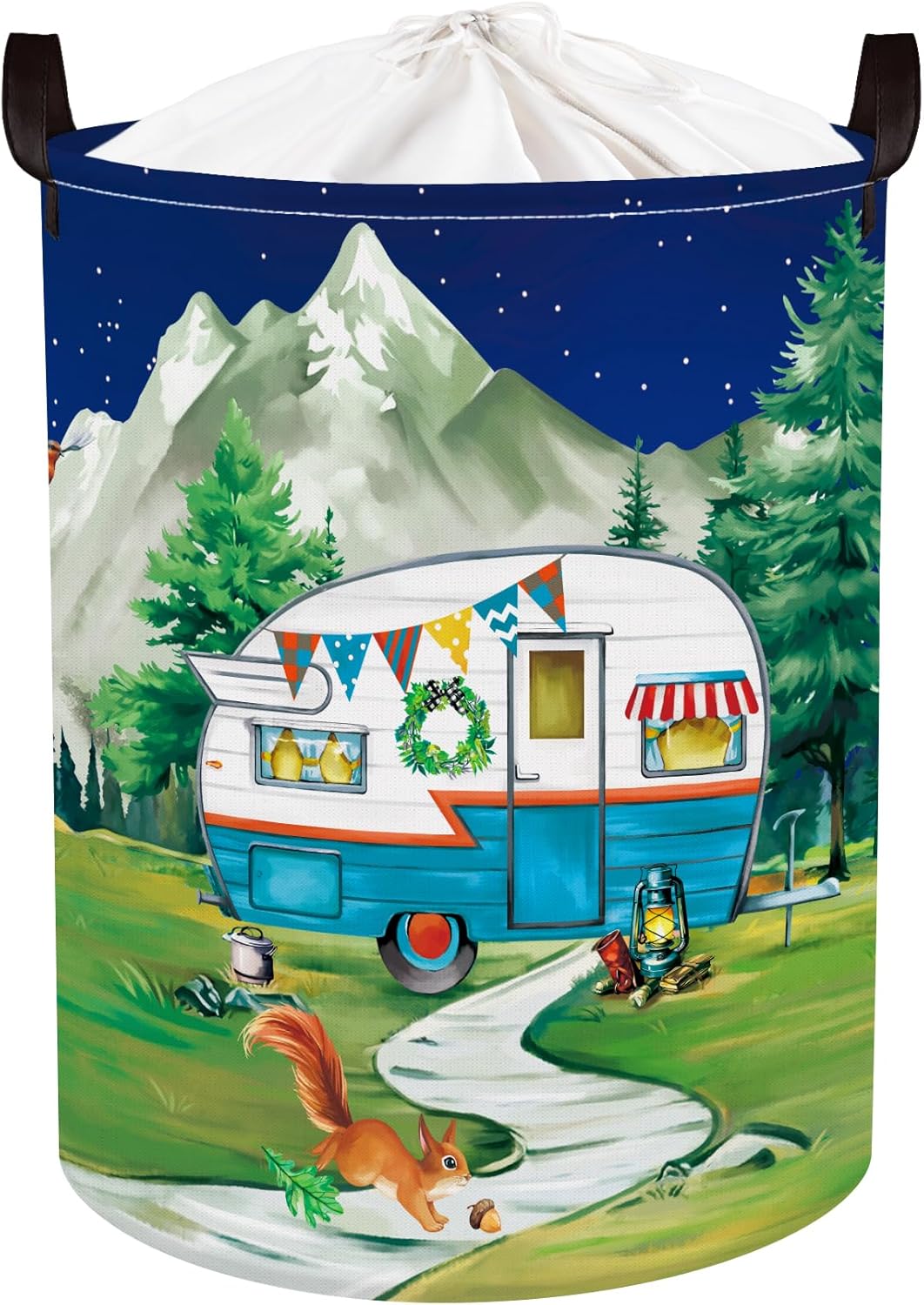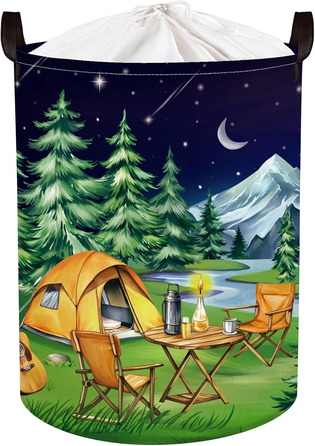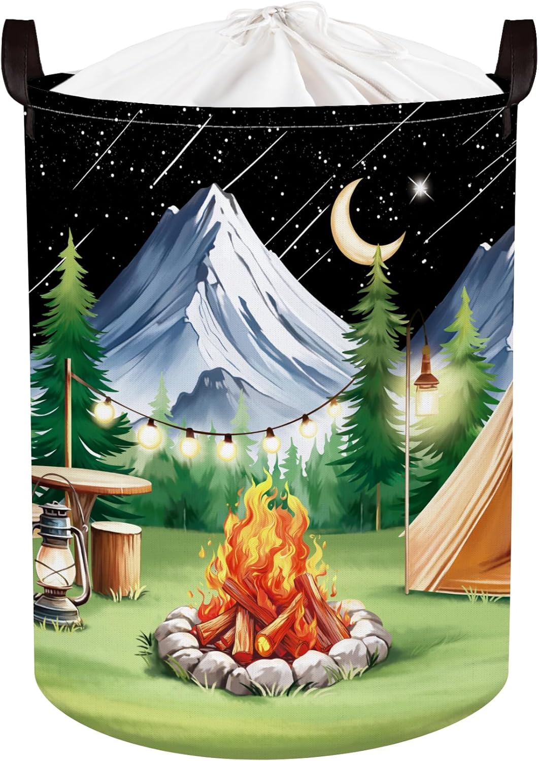 HUUMONSS Night Camping Laundry Hamper Picnic Large Storage Basket Bonfire Collapsible Adult Organizer Kids Toy Clothes Bins for Outdoor, Bathroom, Caravan, 36L