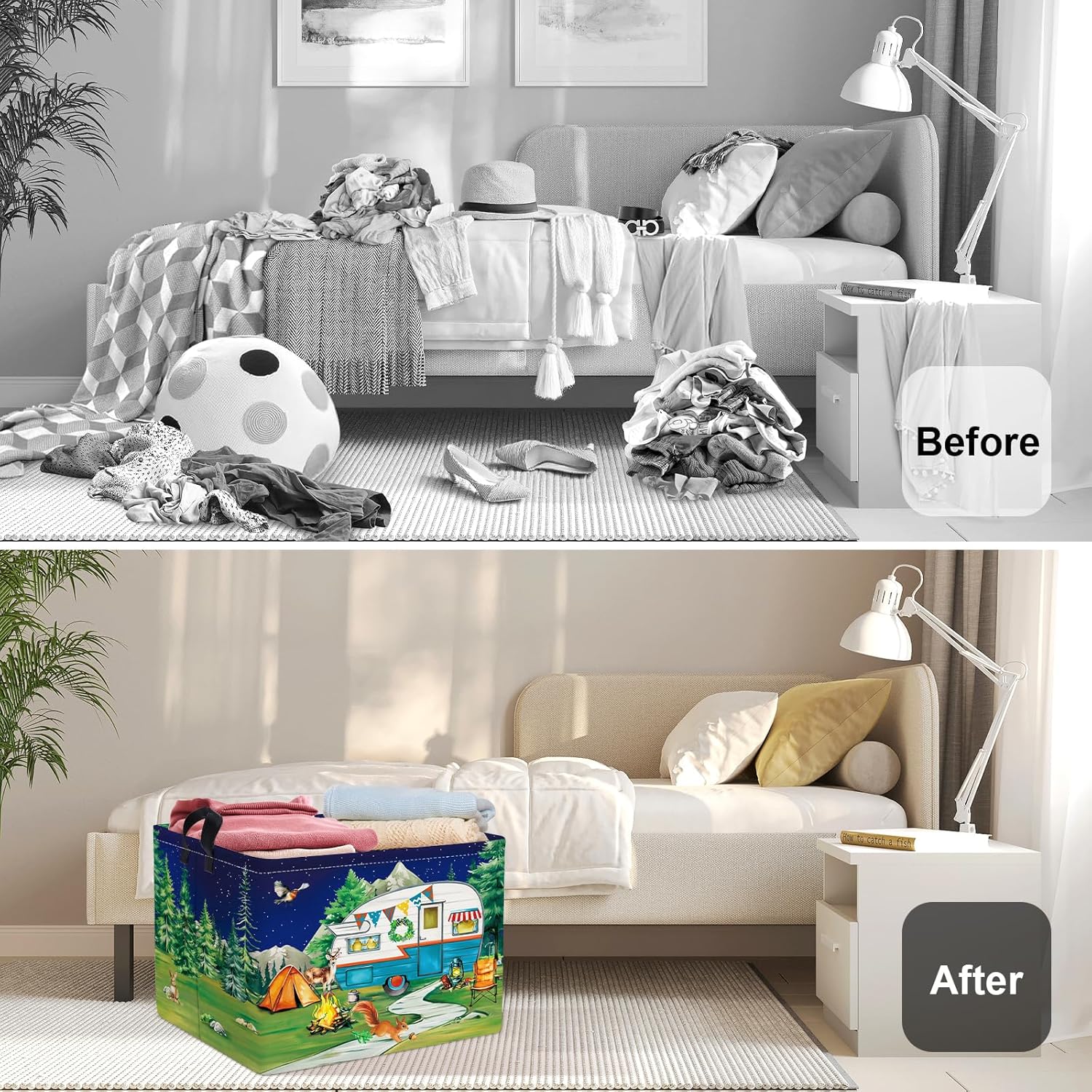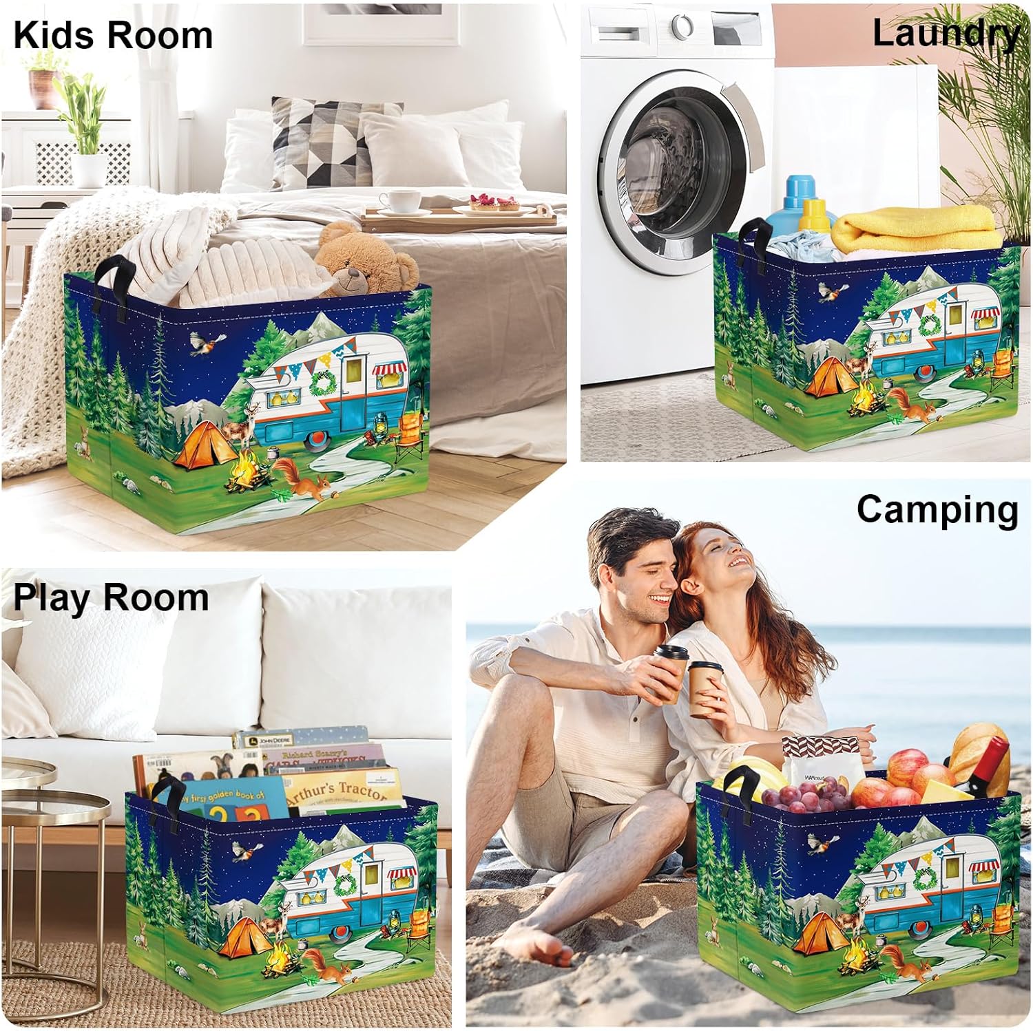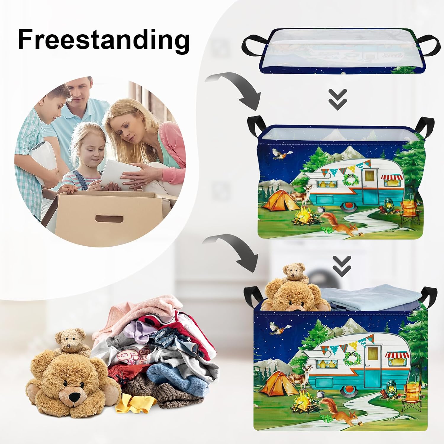 HUUMONSS Night Camping Laundry Hamper Picnic Large Storage Basket Bonfire Collapsible Adult Organizer Kids Toy Clothes Bins for Outdoor, Bathroom, Caravan, 36L
