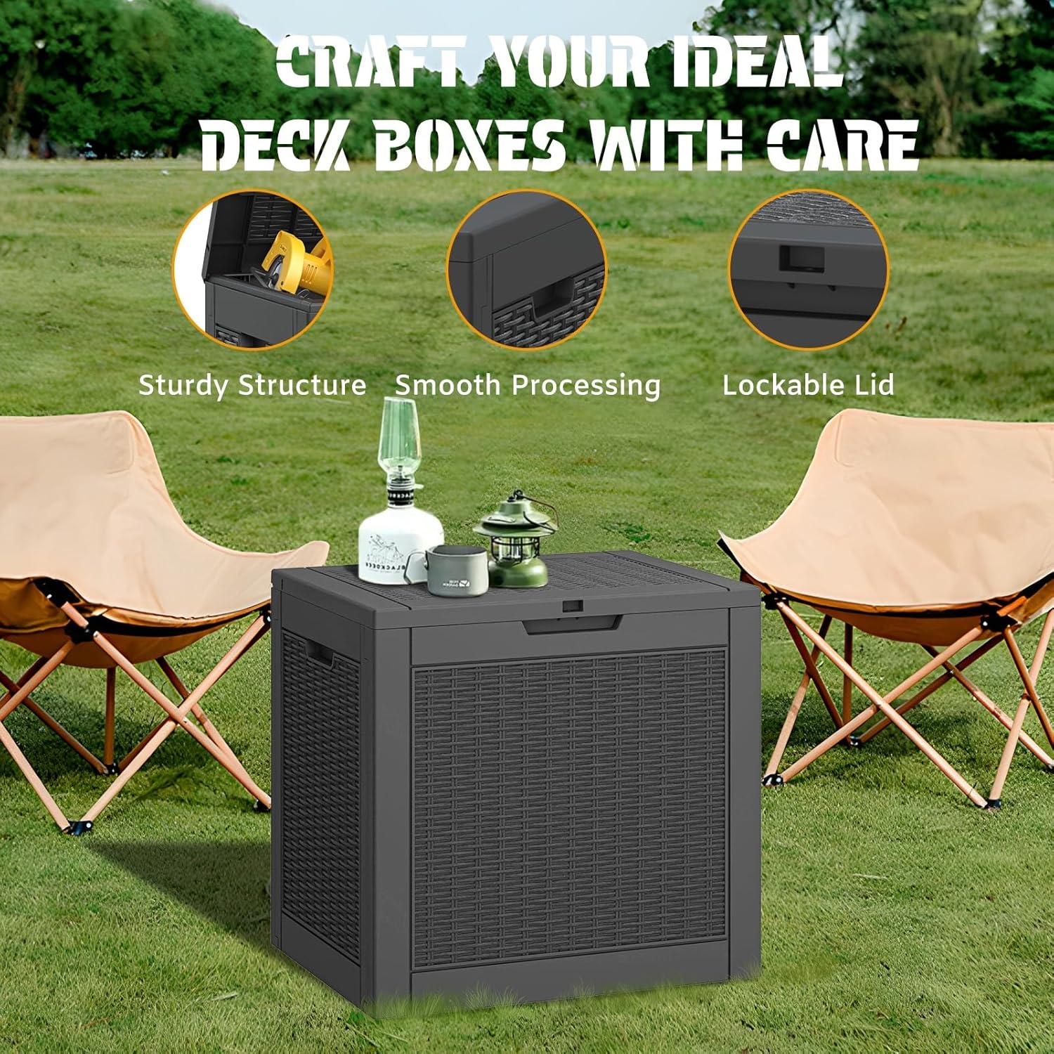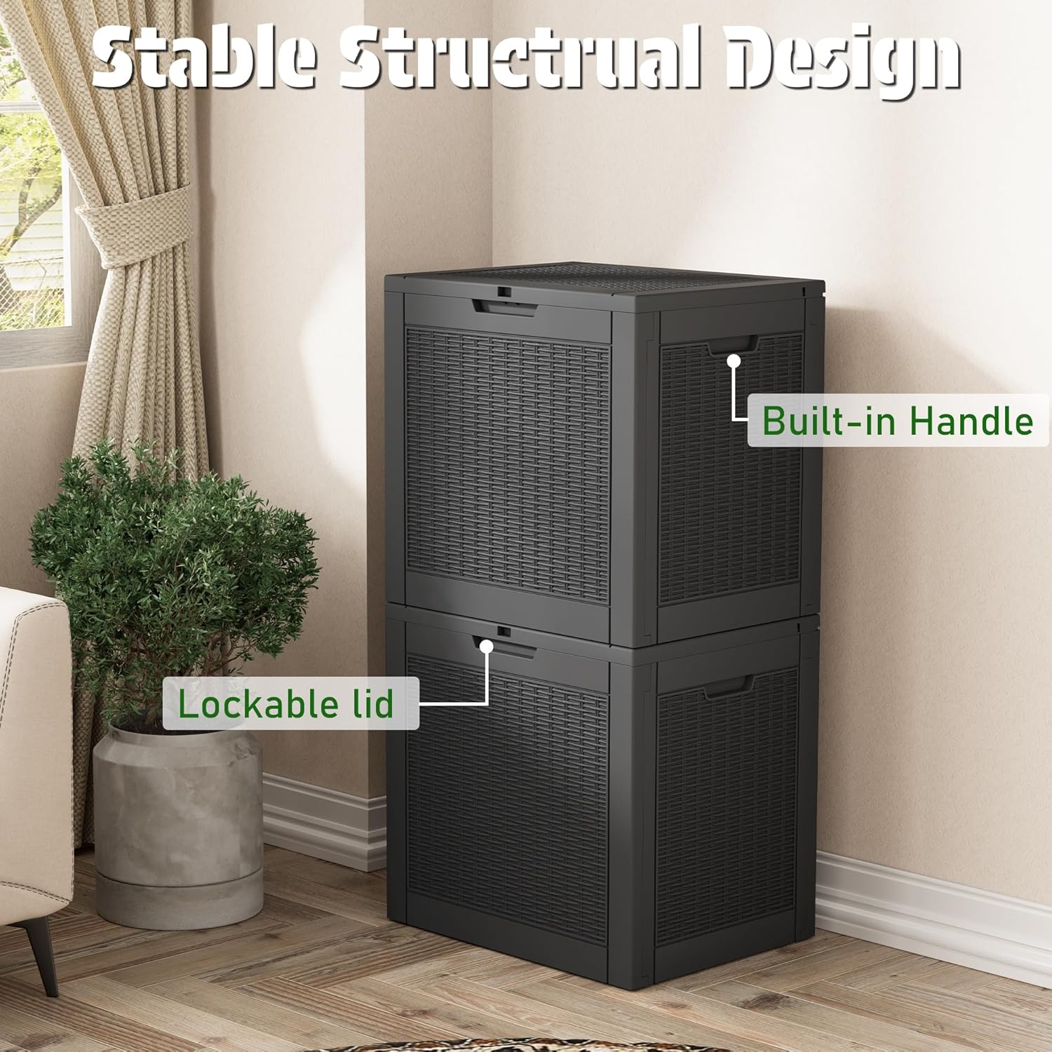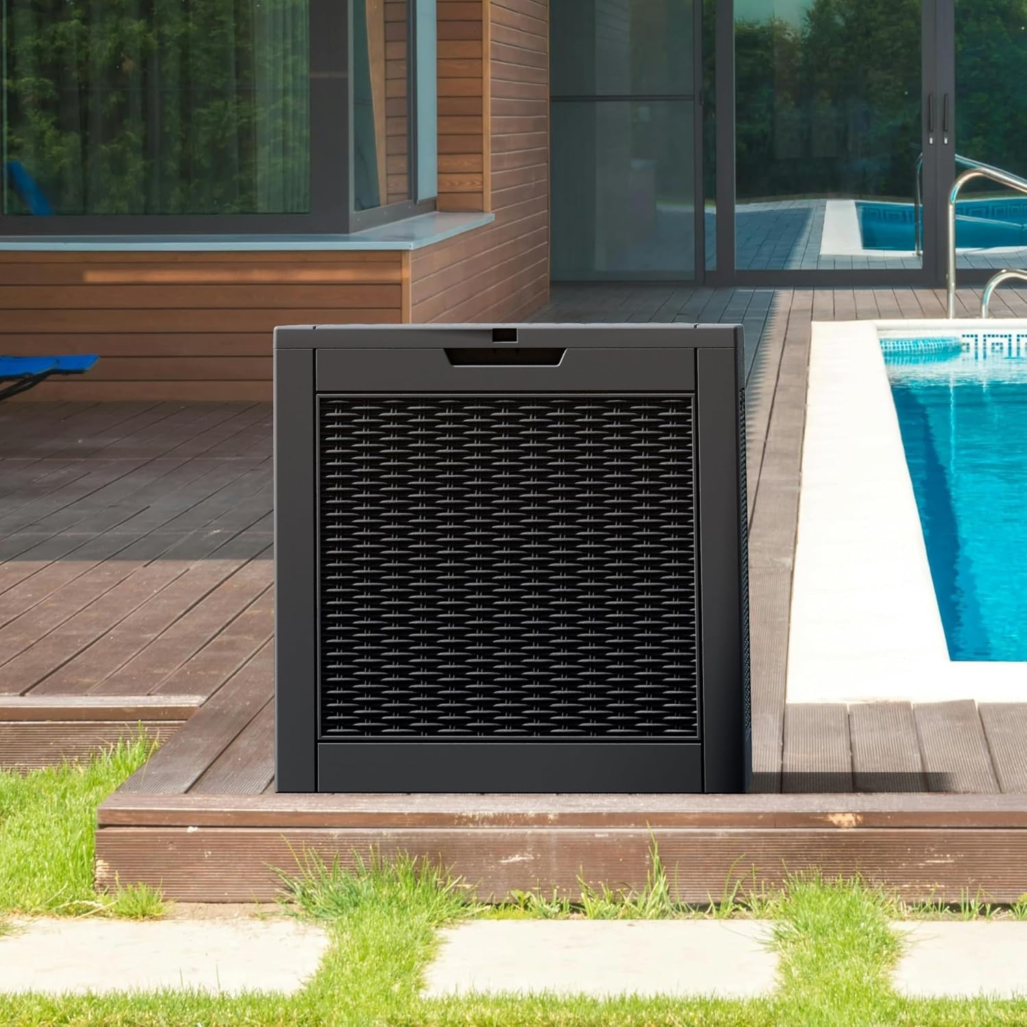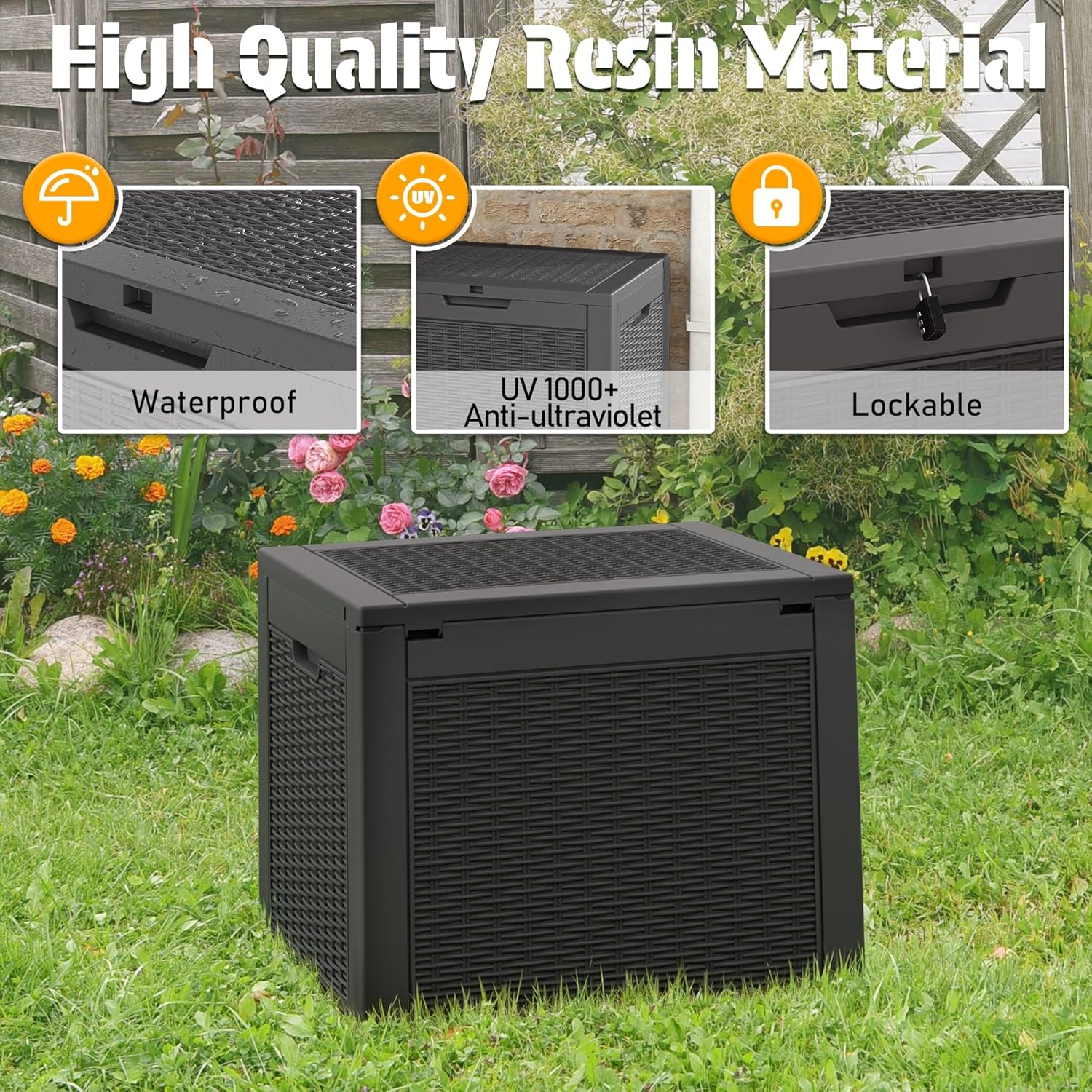 NUNU LAB 31 Gallon Outdoor Storage Box Waterproof, Outside Package Delivery Deck Boxes with Lockable Lid, Backyard Storage Bin For Garden Tools, Patio Cushions Accessories, Black