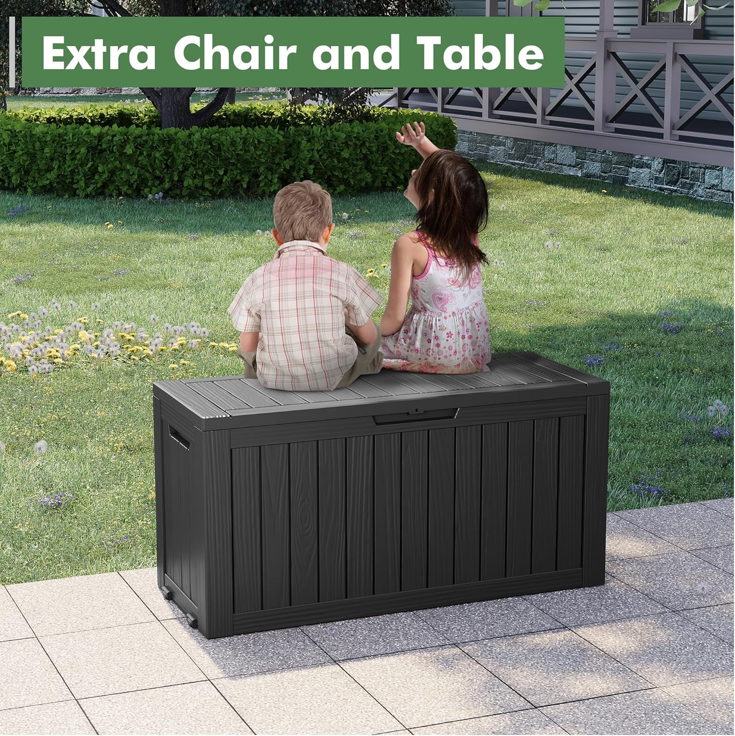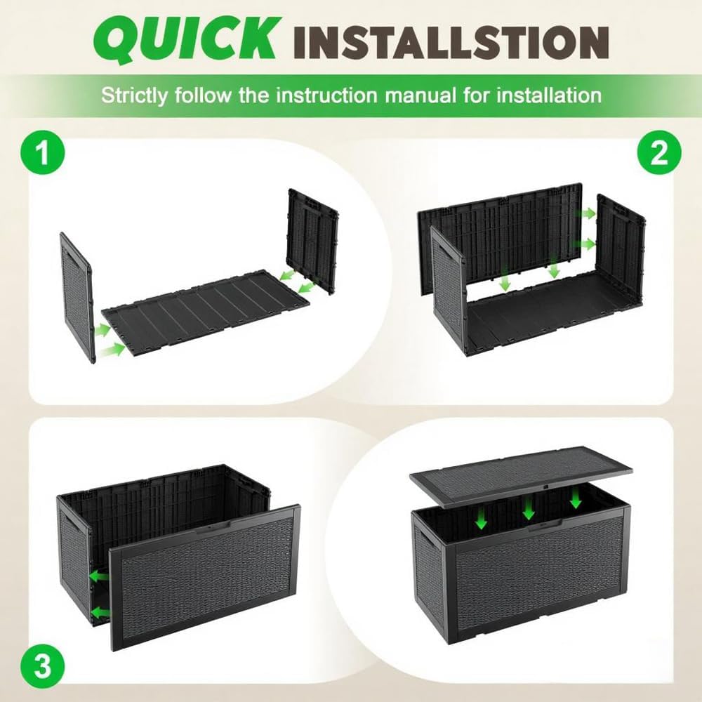 NUNU LAB 75 Gallon Outdoor Storage Box,Large Resin Sturdy Deck Box, Backyard Outside Storage Box Waterproof with Double Wall Panels,Package Delivery Garden Hose Storage Bin Outdoor Tool