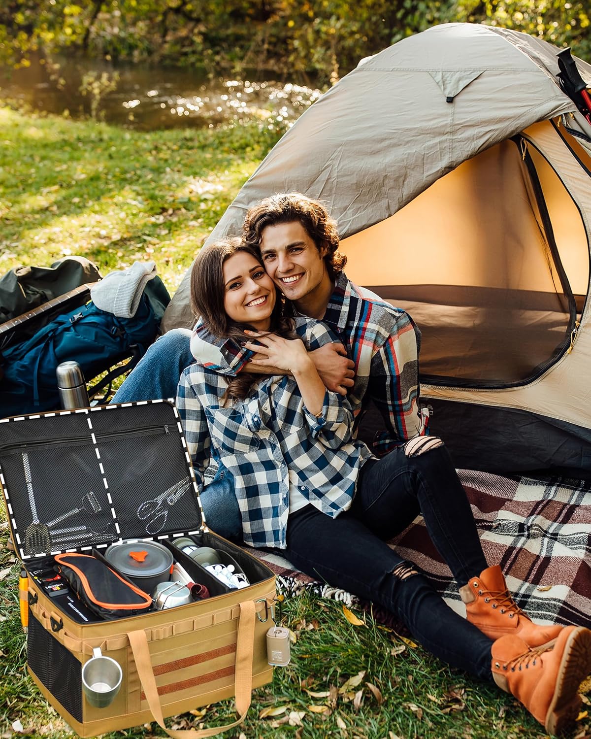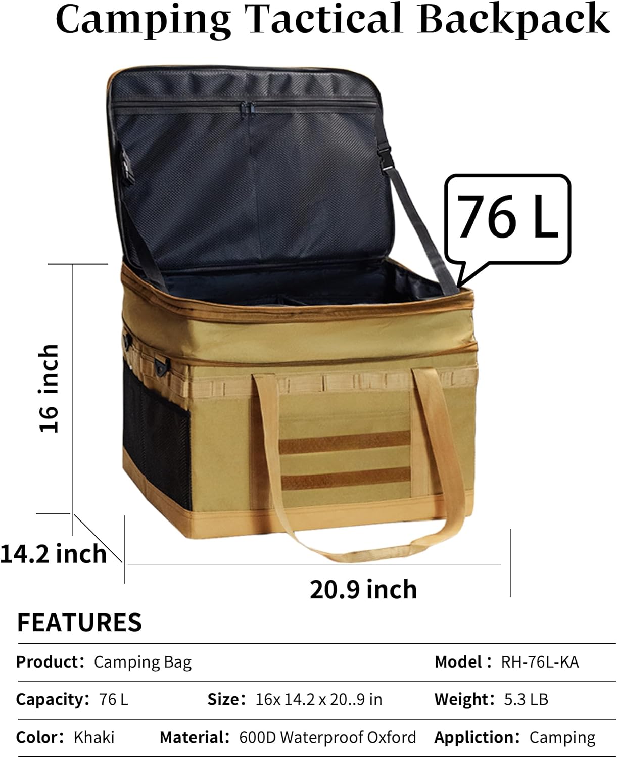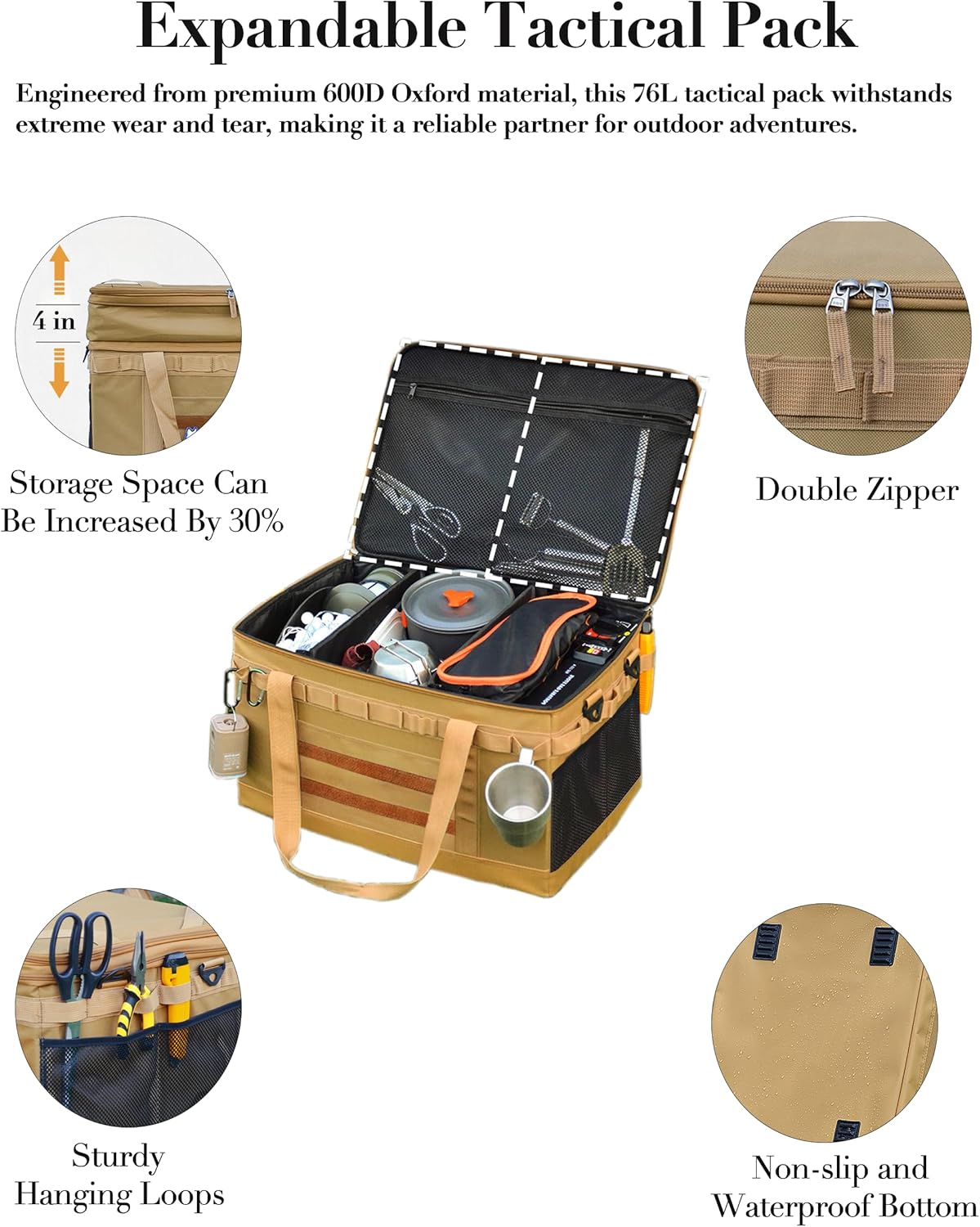 OutCrest Tactical Camping Storage Bag,Expandable 76L Large Capacity Heavy-Duty Duffel Organizer with Waterproof Bottom, 2 Adjustable Dividers, Collapsible, 900D Oxford Fabric, Outdoor Gear