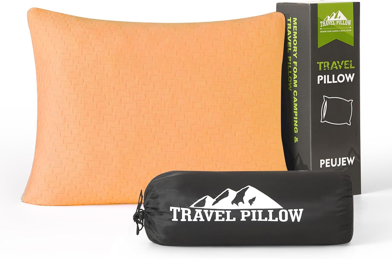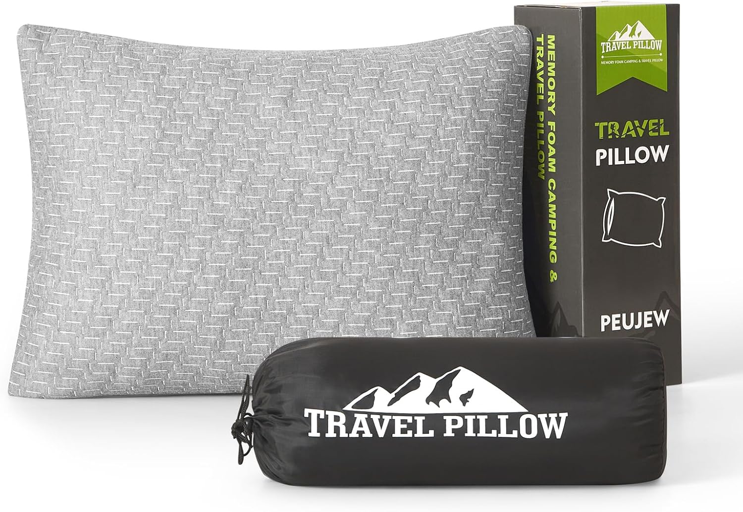 PEUJEW Small Shredded Memory Foam Pillow, Camping Pillow Travel Pillow – Compressible Medium Firm, Breathable Cover, Ideal Backpacking Hiking, Airplane and Car