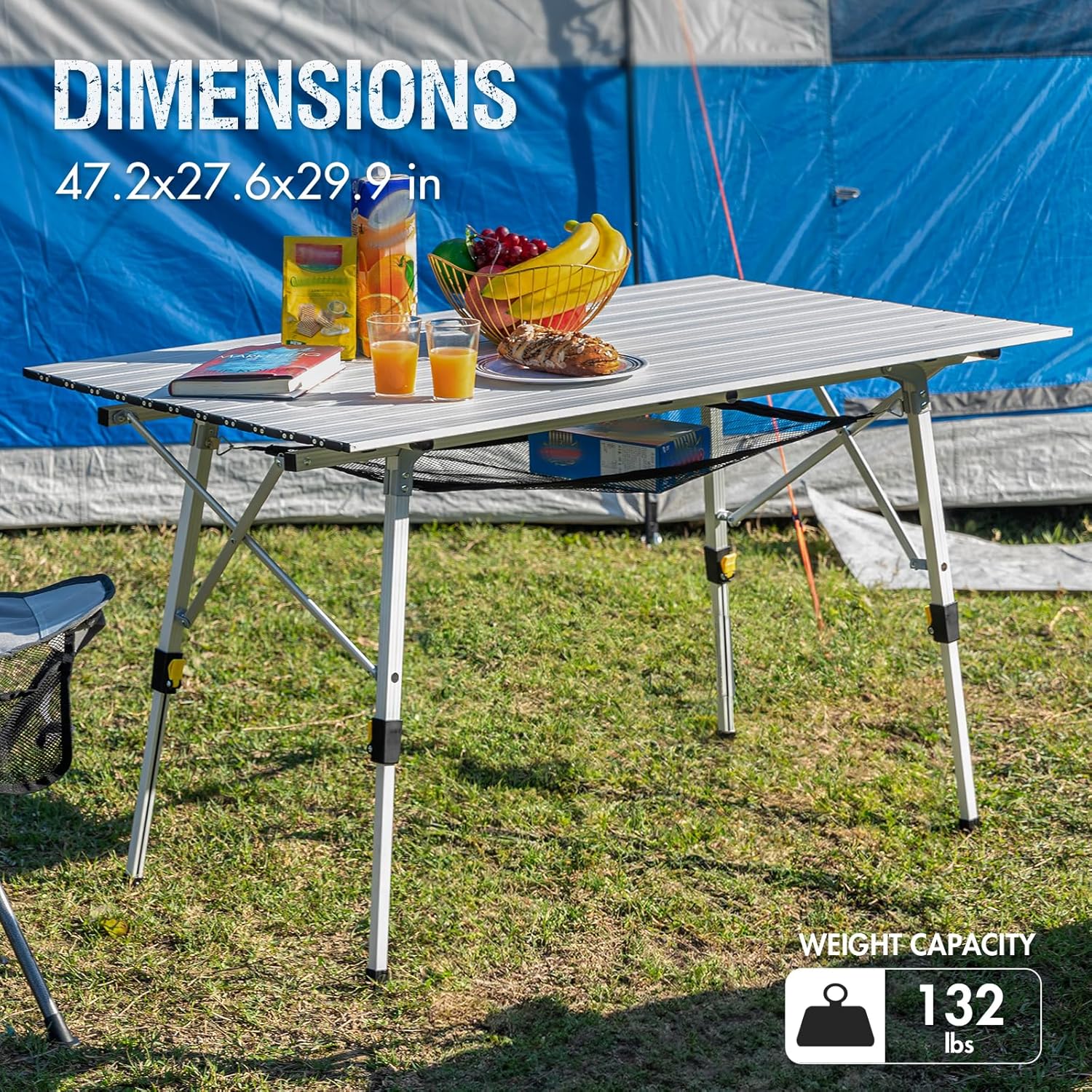 PORTAL Camping Table Portable Foldable with Adjustable Legs, Aluminum Folding Table Roll Up Table with Carrying Bag for Outdoor, Beach, Picnic, Backyards, BBQ and Party, Silver, Big