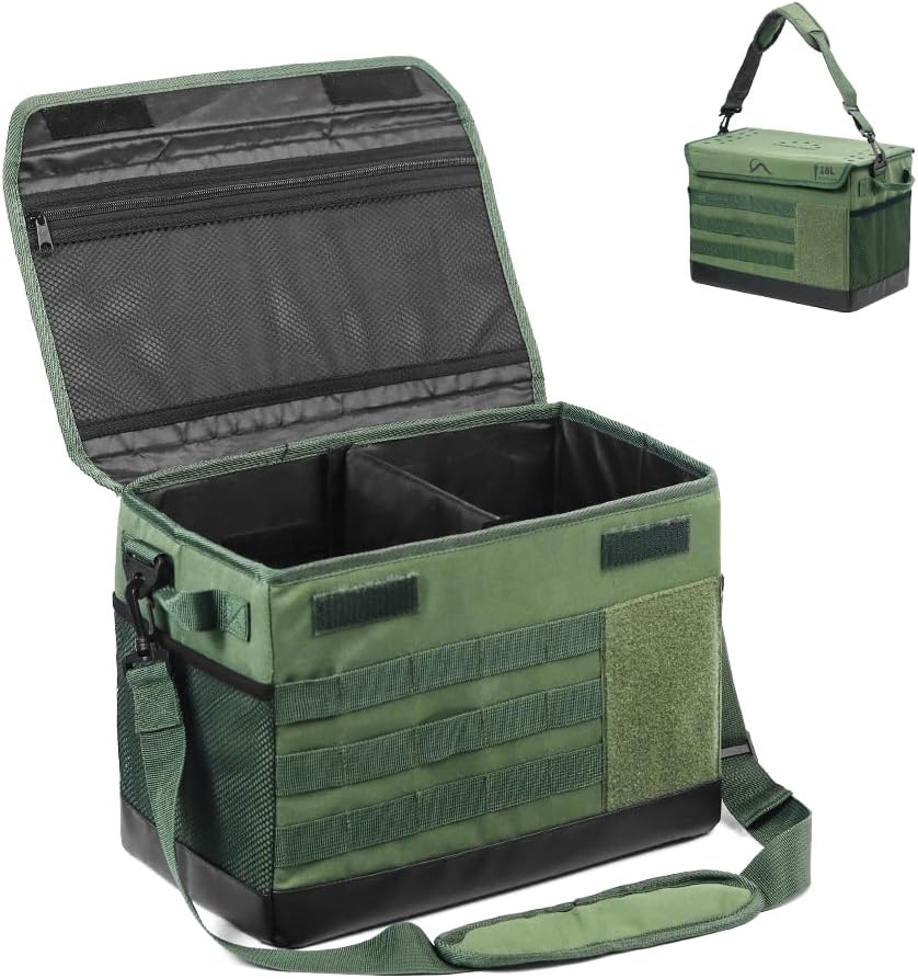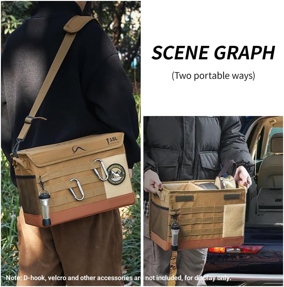 - Dimensions in 13.7''(l) *9.8'' (w) * 7.8''(h)/35*25*20cm, large storage space for your utensils, tent stakes, camping tools, barbecue items, etc.