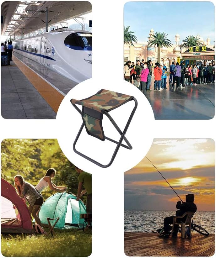 Qesonoo Mini Portable Folding Stool, Camping Fishing Stool for Adults Fishing Hiking Gardening and Beach with Carry Bag, Hold Up to 450lbs(Camouflage)
