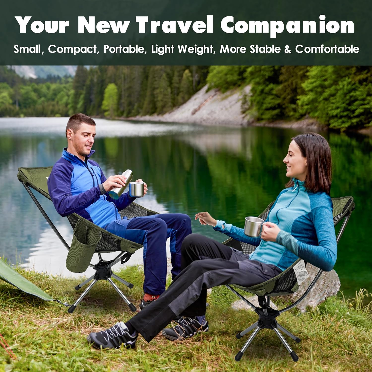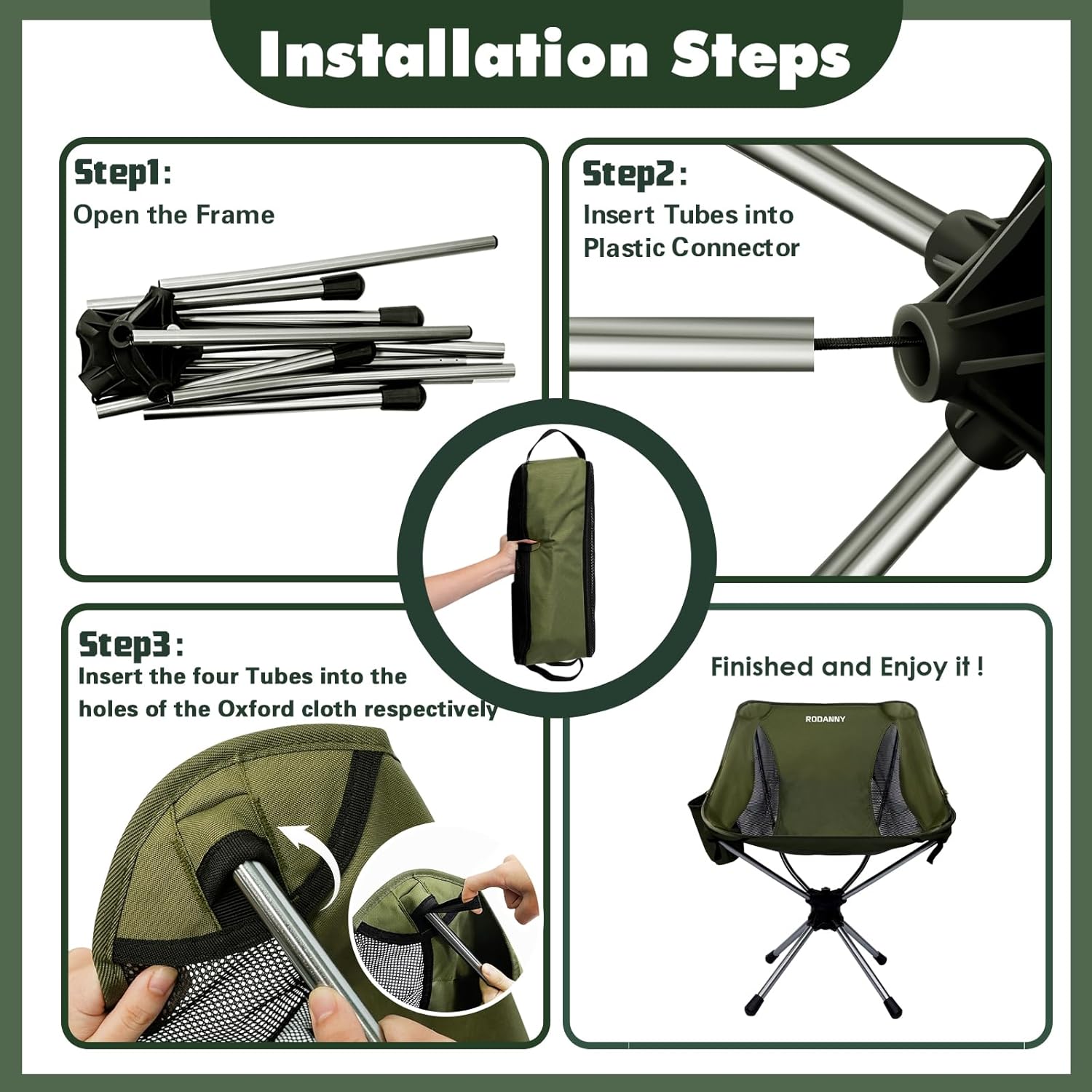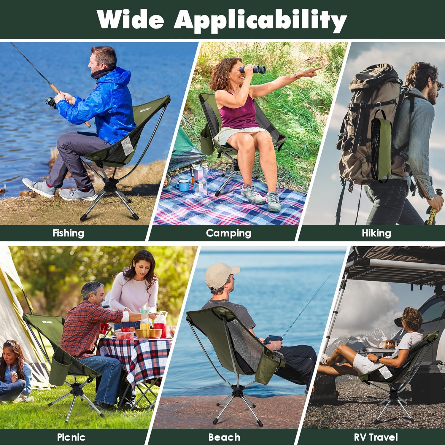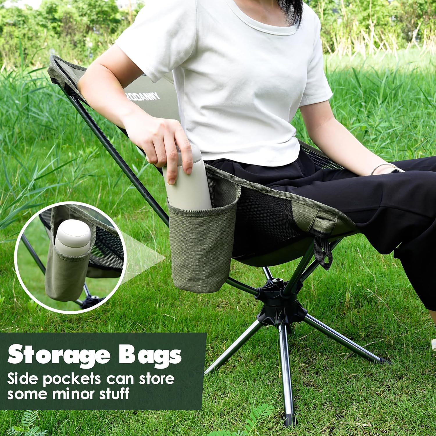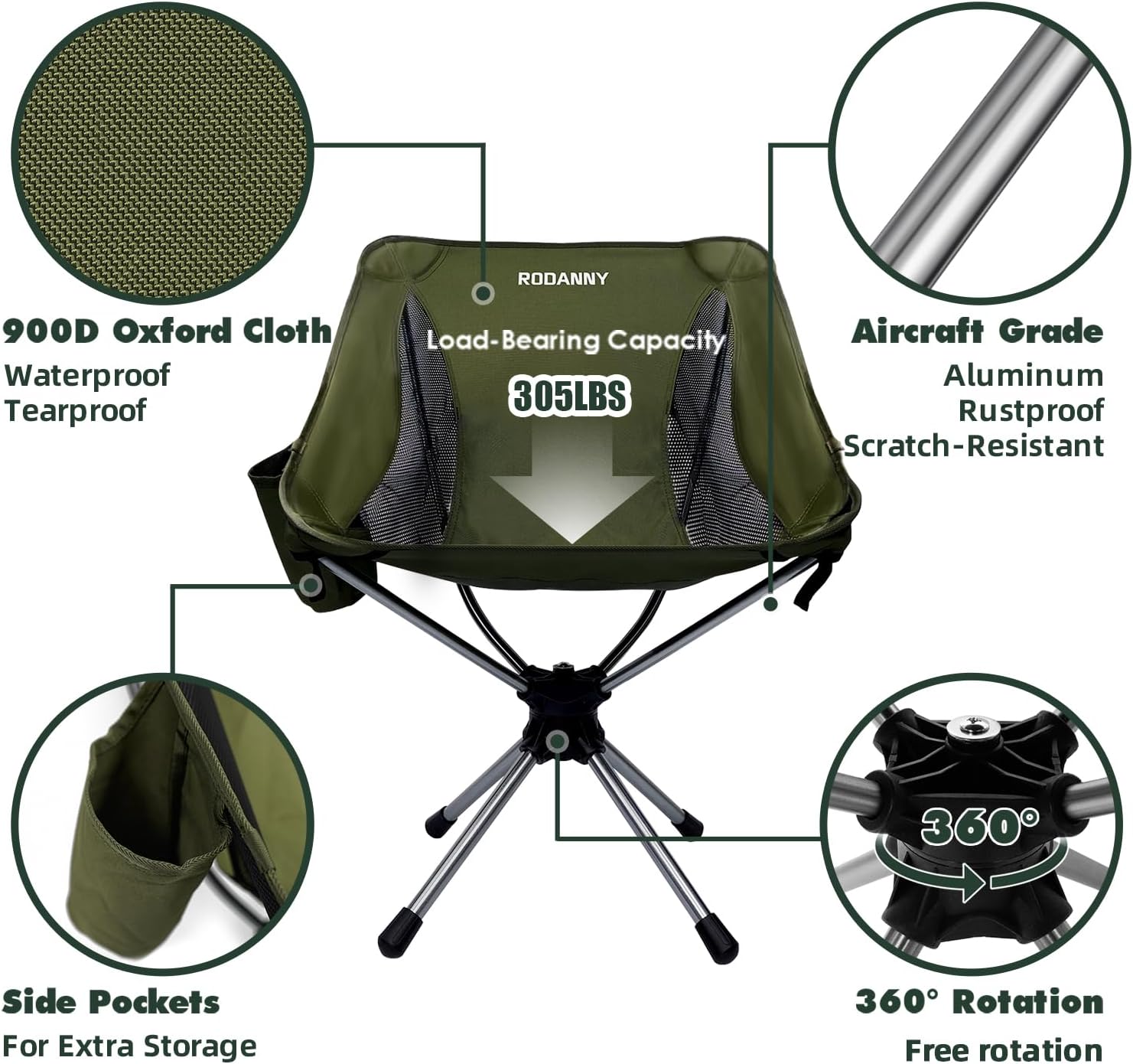 RODANNY Camping Chairs, 360° Degree Swivel Folding Chairs,Portabl Outdoor Chairs for Travel Hiking Fishing lawns Picnic Hunting,Support 305 LBS,Lghtweight,Green