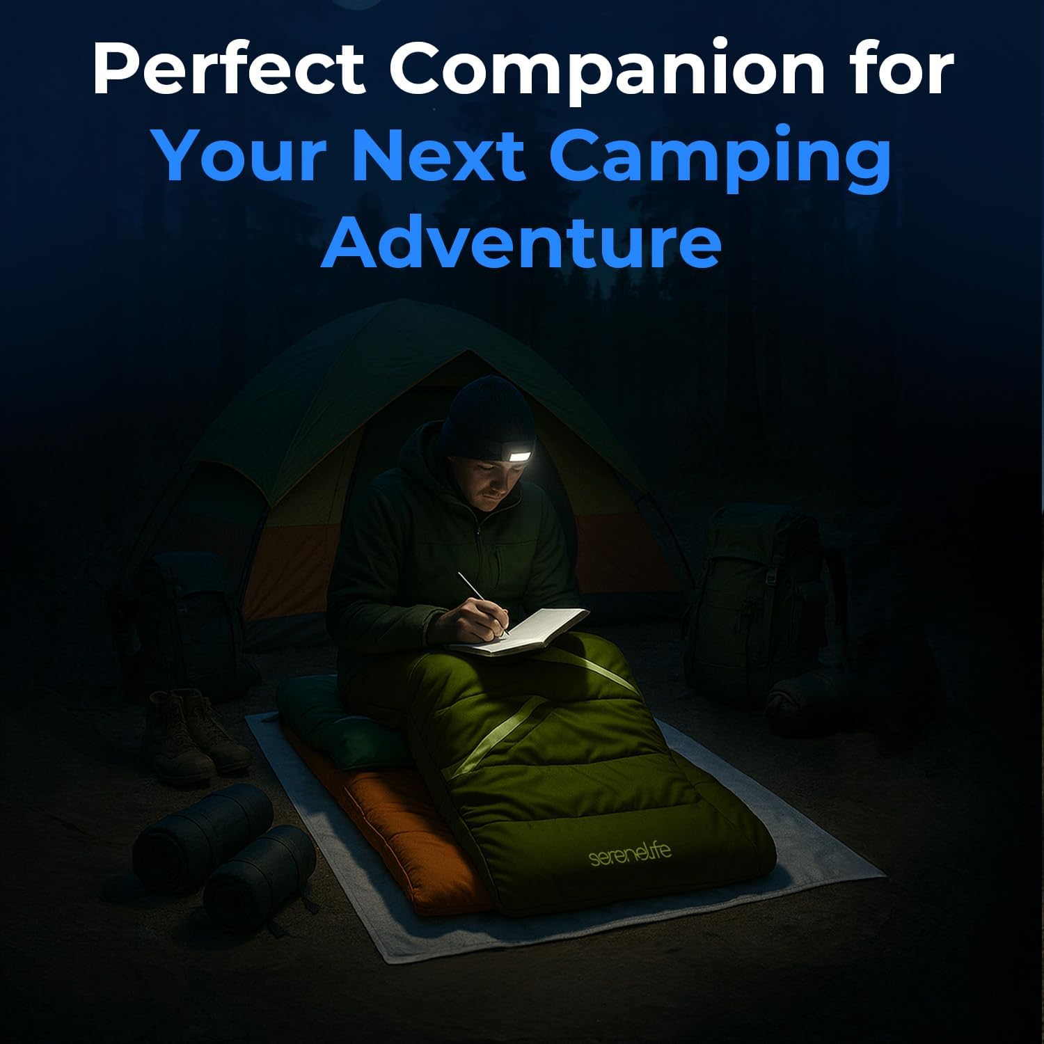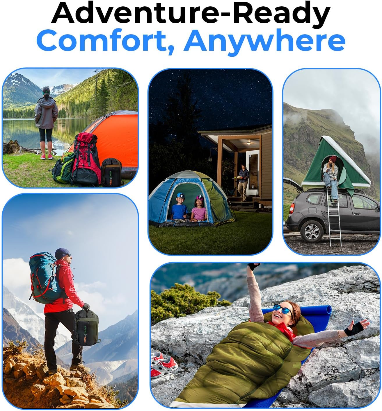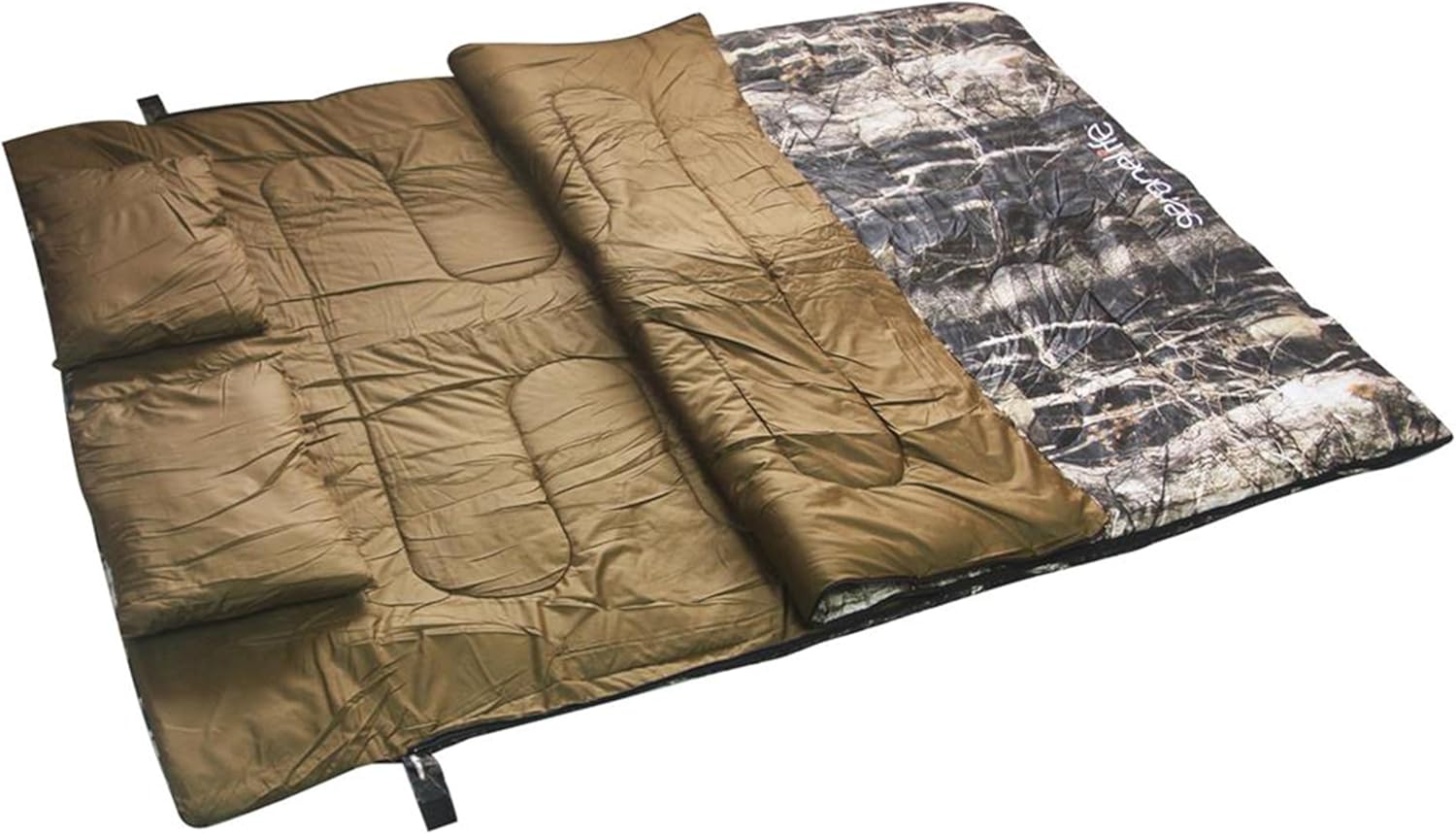 SereneLife Double Sleeping Bag with Pillows, Waterproof & Detachable for 2 Single Bags, Lightweight & Warm, Perfect for Camping, Hiking, Backpacking, and Cold Weather, Suitable for Temperatures 5-10°F