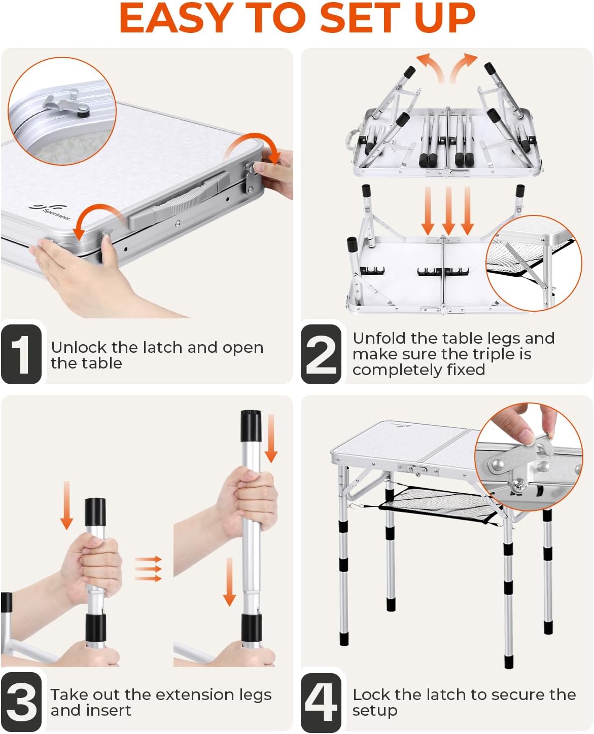 Sportneer Camping Table: Adjustable Height Small Folding Table 23.6″ L x 15.7″ W 4 Height with Mesh Layer – Compact & Portable Camping Essentials for Outdoor Camp Garden Picnic BBQ Dining Cooking | Adjustable Height, 3 Height, Mesh Layer, Compact, Portable, Camping Essentials