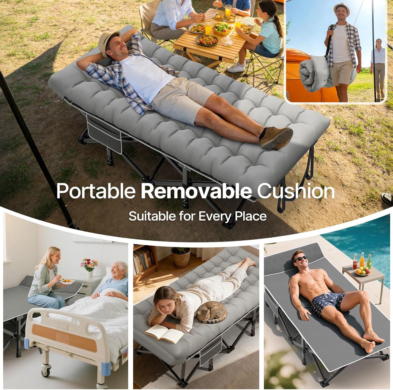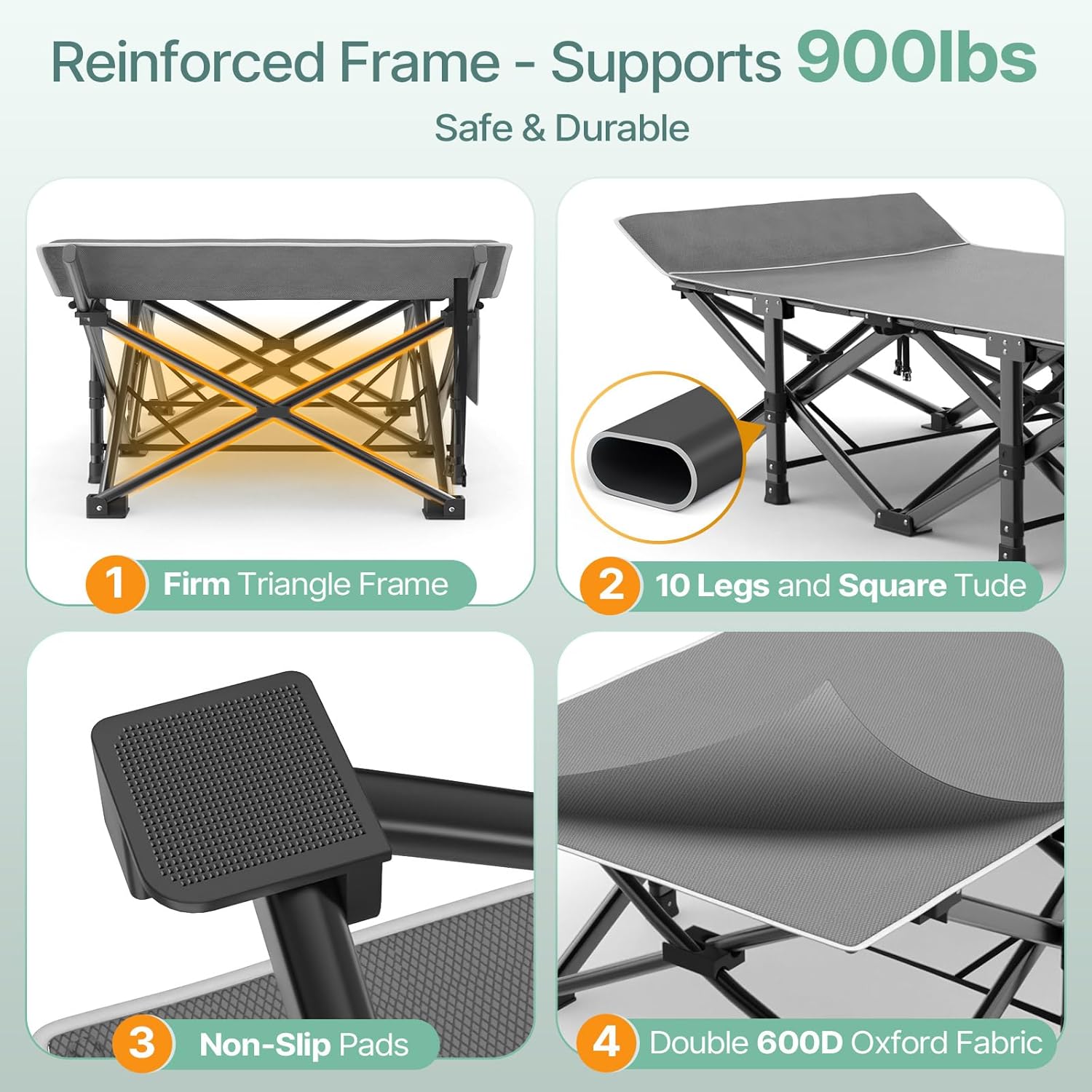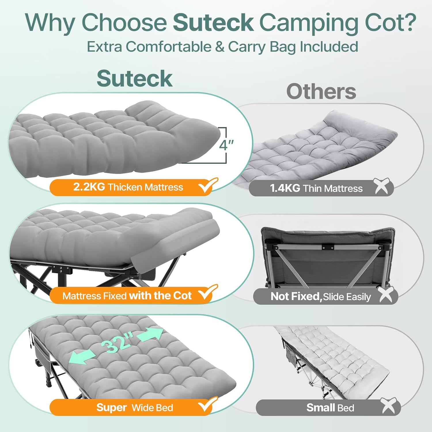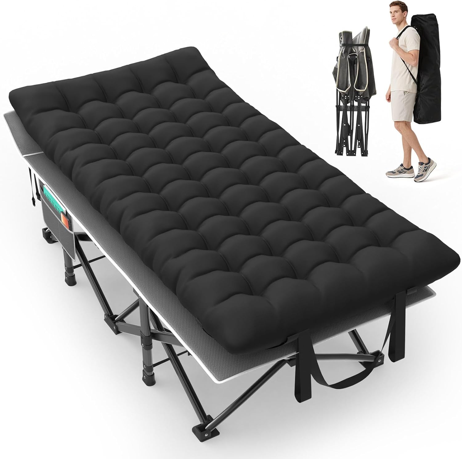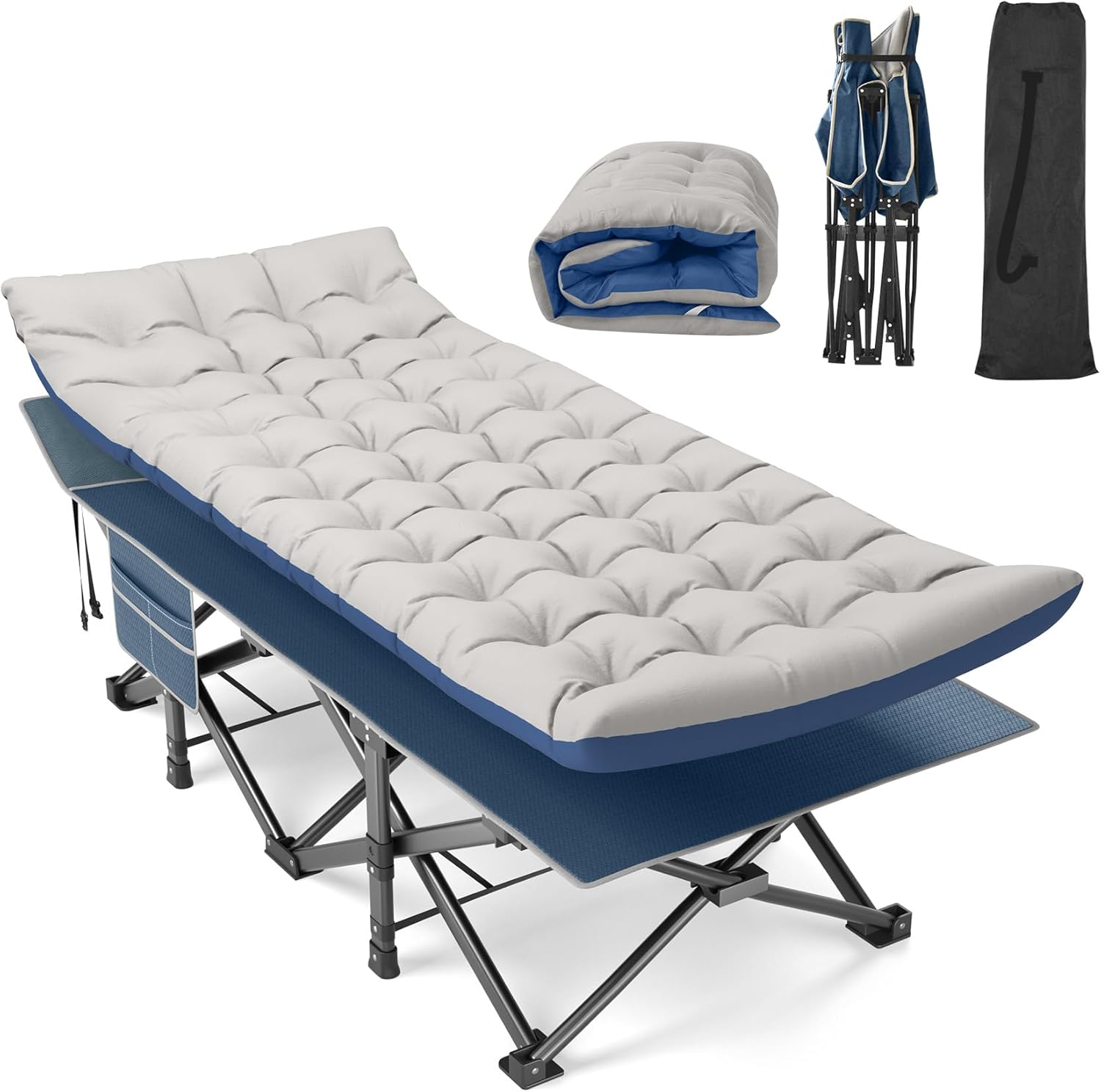Suteck 32In XXL Folding Camping Cot, 900LBS Heavy Duty Sleeping Cot with Pillow Mattress, 1200D Double-Layer Oxford Portable Cot for Adults with Carry Bag for Home Office Nap Beach Travel
