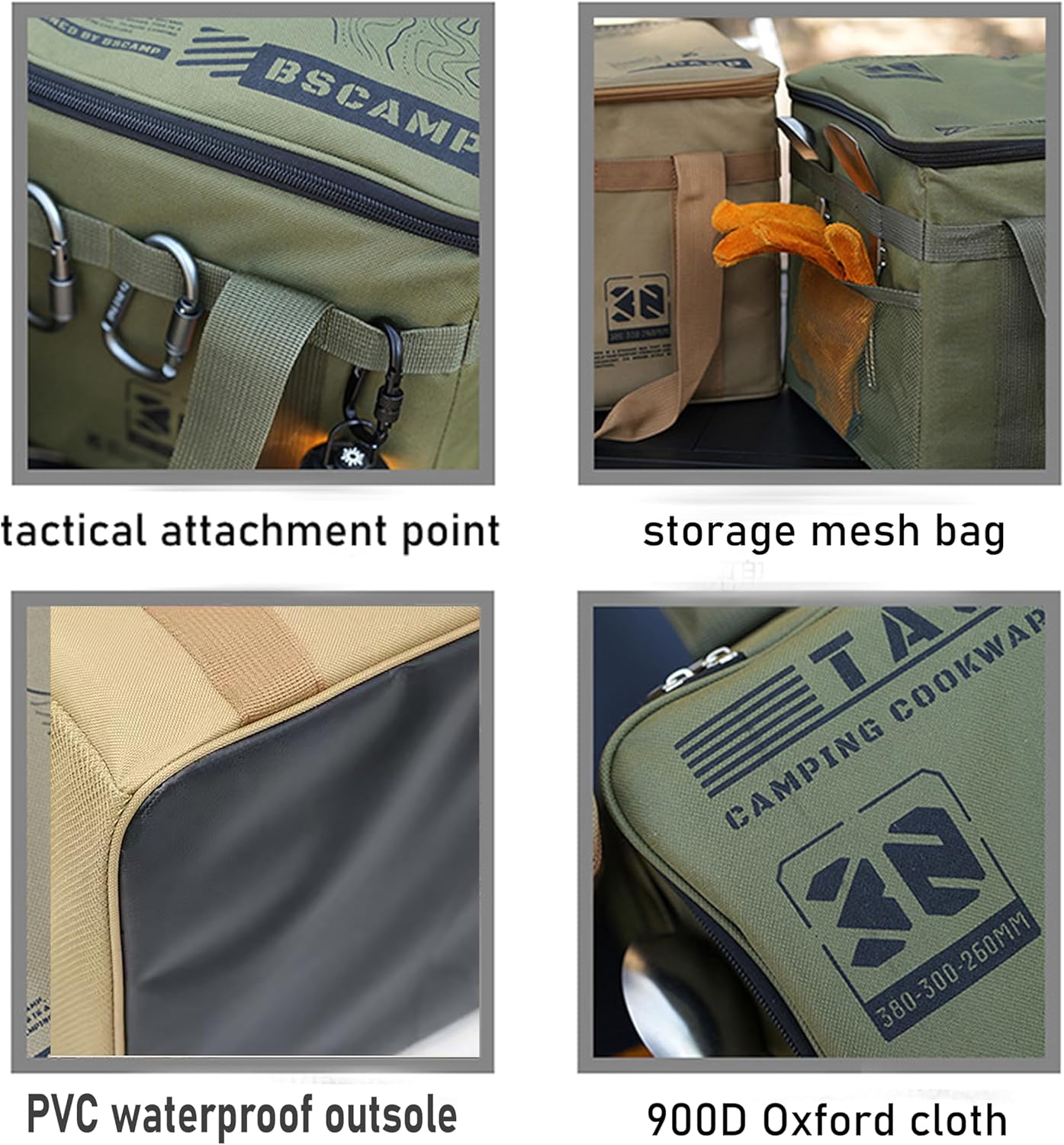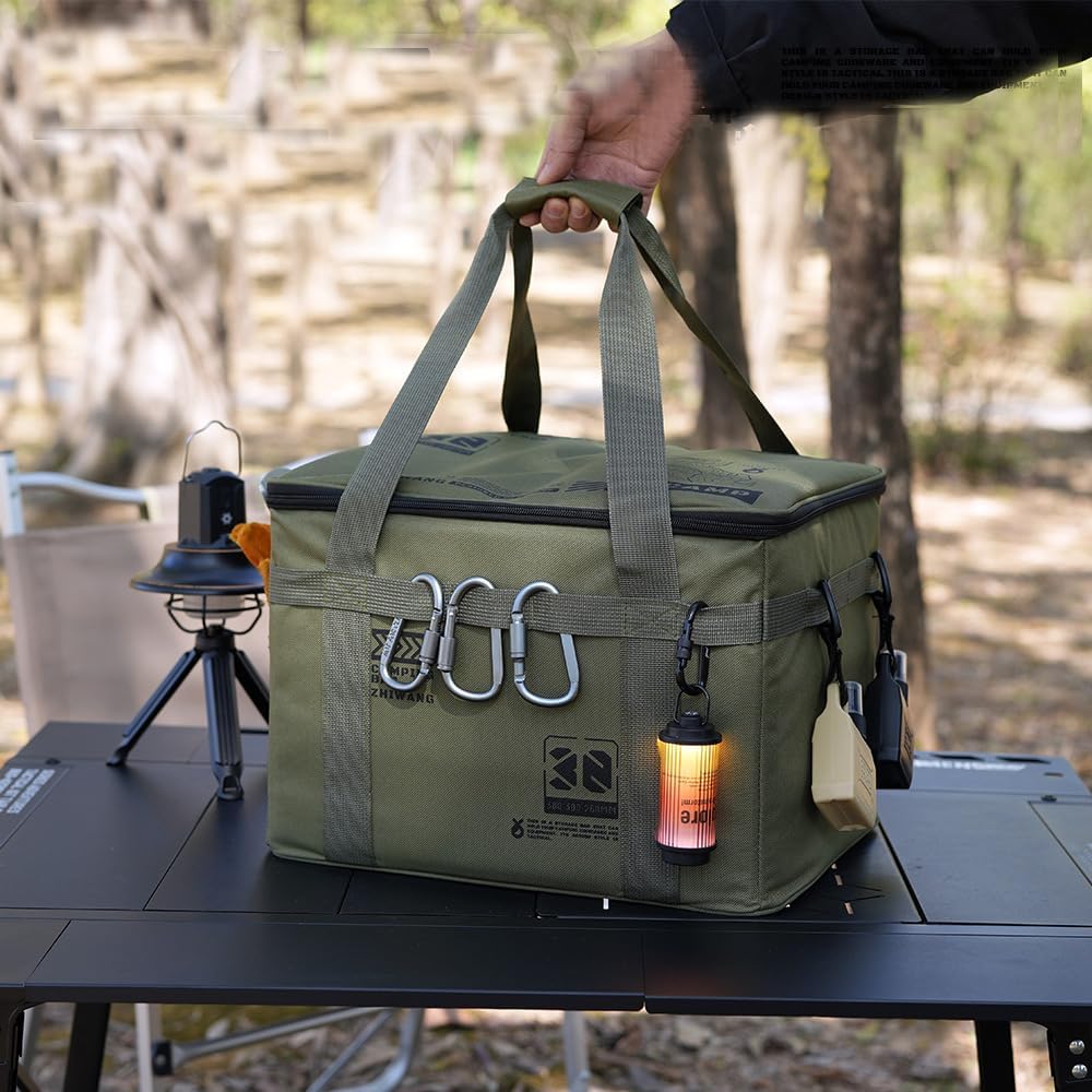 Tactical Camping Gear Storage Bag 30L,Utility Tote Bag Camping Kitchen Organizer, Military Green, Heavy-Duty Canvas, 380x280x260mm