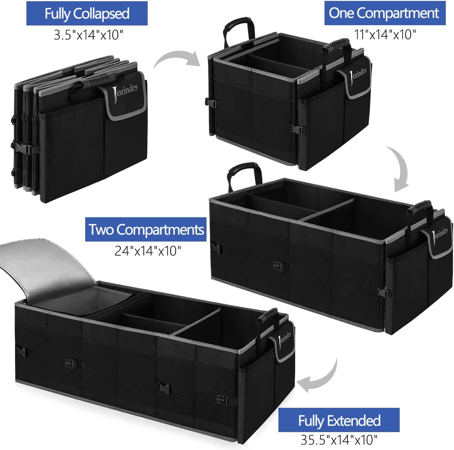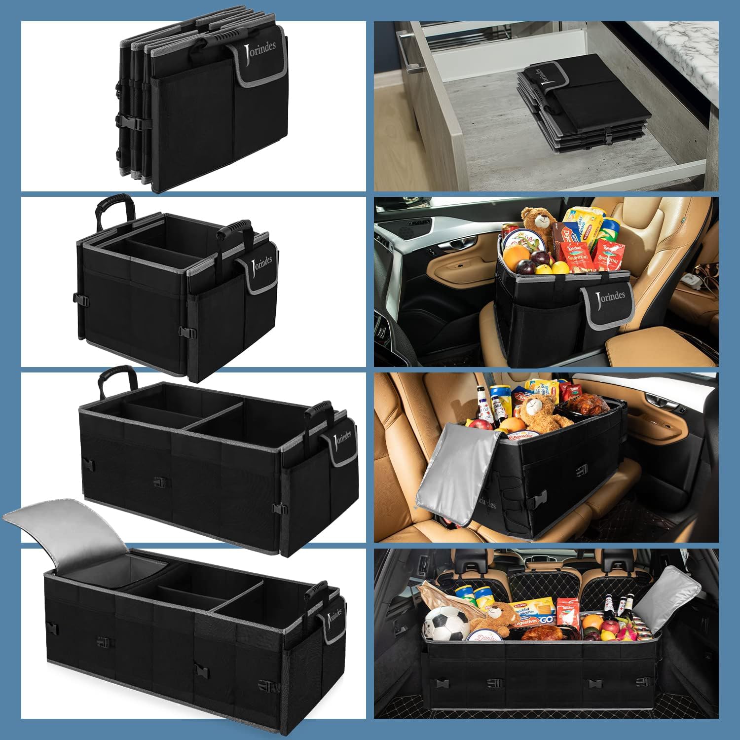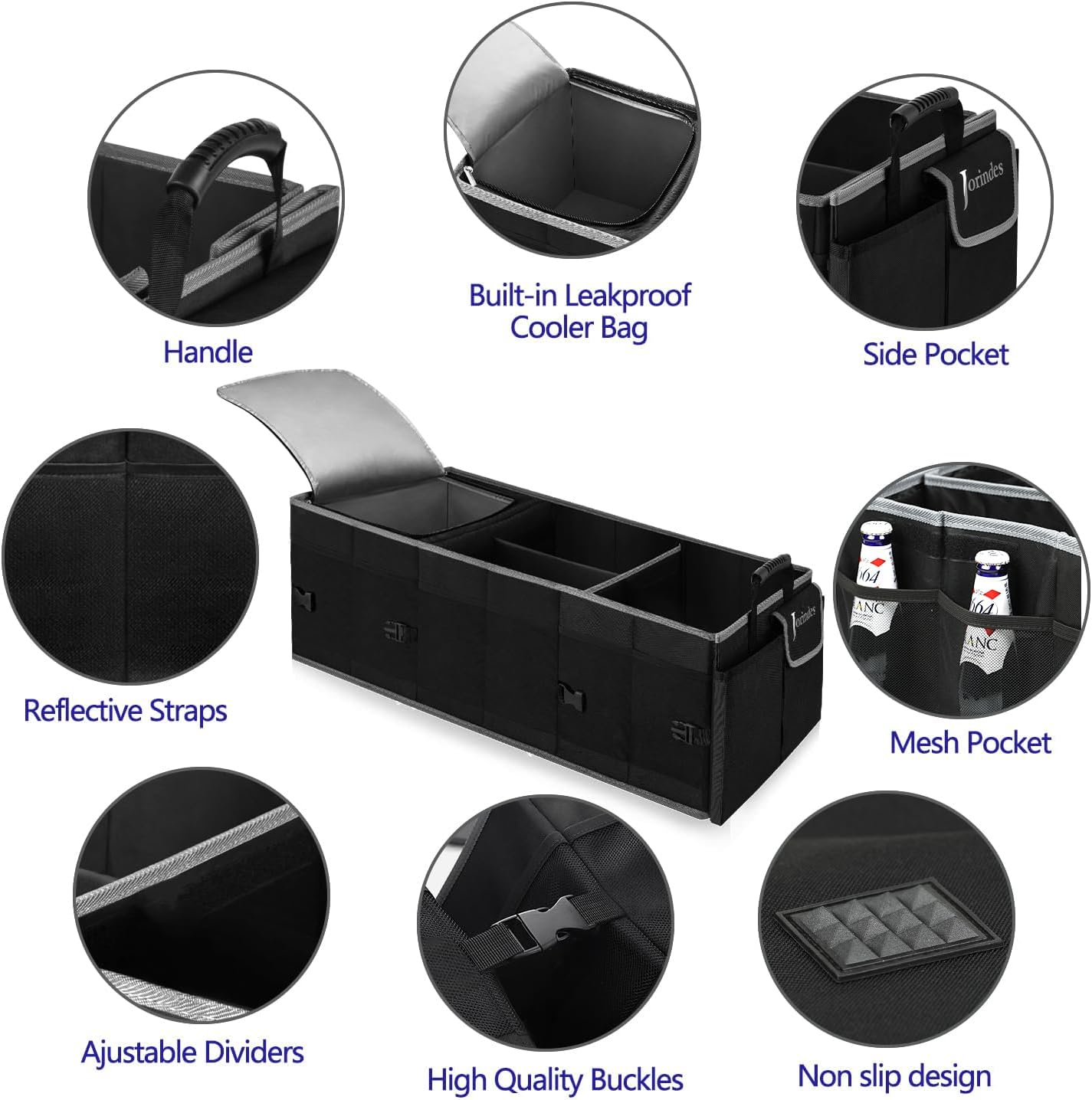 Trunk Organizer With Built-In Insulated Leak Proof Cooler Bag,Collapsible Cargo Organizer For Suv With Non Slip Bottom Strips,3 Large Compartments Foldable Waterproof Portable Car Storage Box